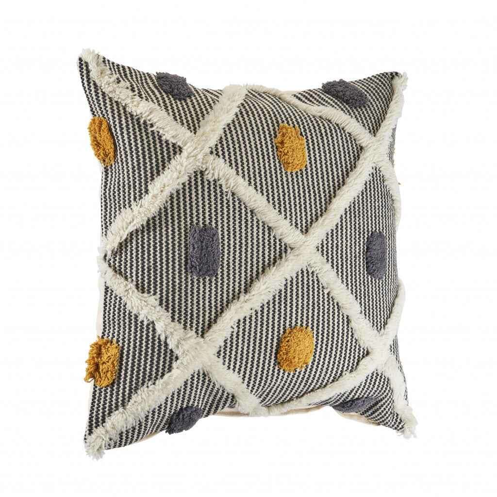 This 20" x 20" black gray yellow and off-white 100% cotton geometric zippered pillow will add a beautiful decorative accent to your decor. This super soft decorative pillow is expertly made of high grade, long lasting 100% cotton in a black gray yellow and off-white coloration. Decorative throw pillows not only add color and dimension to your space but can be comfy and supportive when you are lounging and cuddling as well. A great decorative accessory for your favorite chair, to accent your sofa, or to use as part of your bed ensemble. 4" H x 20" W x 20" D
