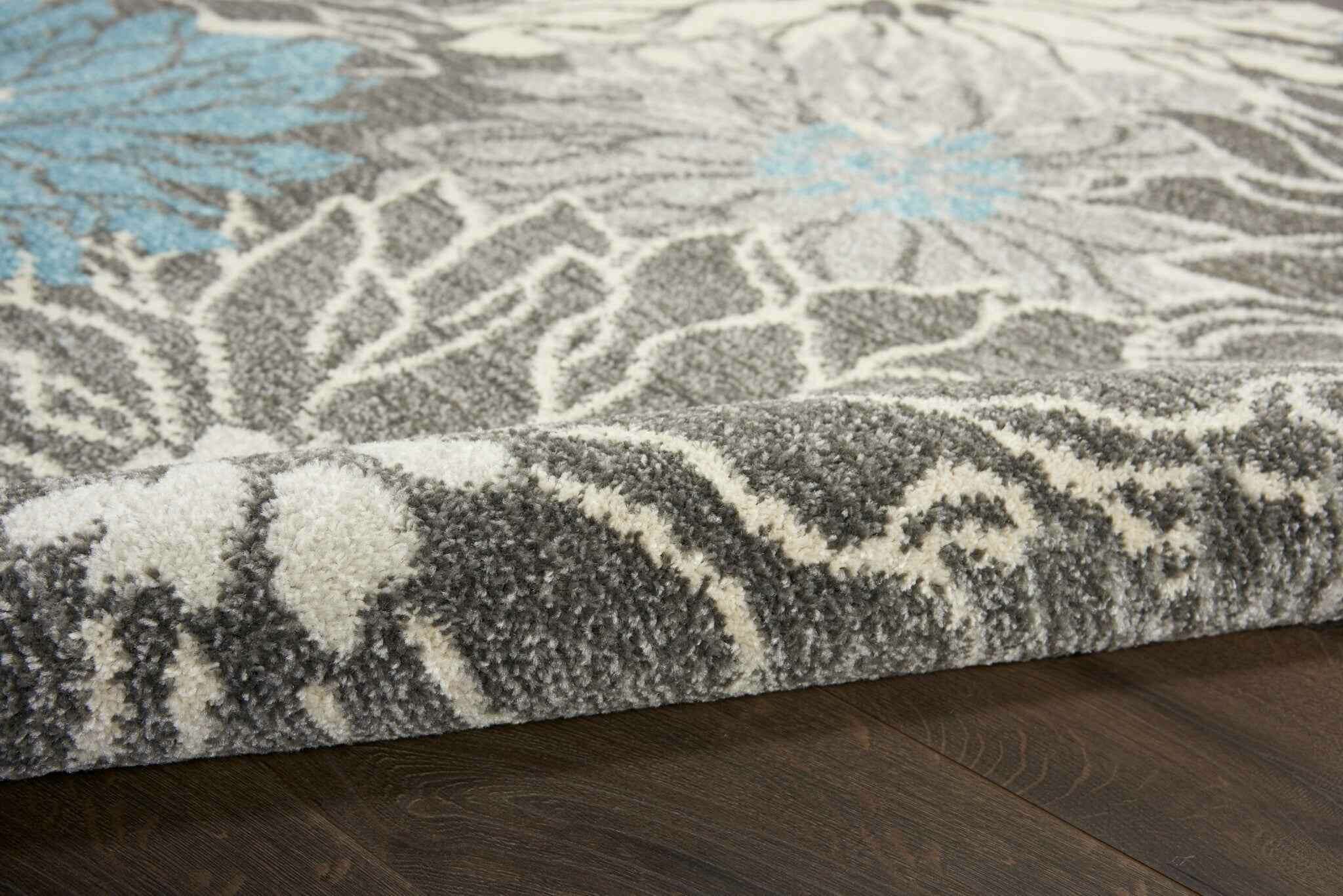 8' Blue And Gray Floral Power Loom Runner Rug "> "> Passer au contenu