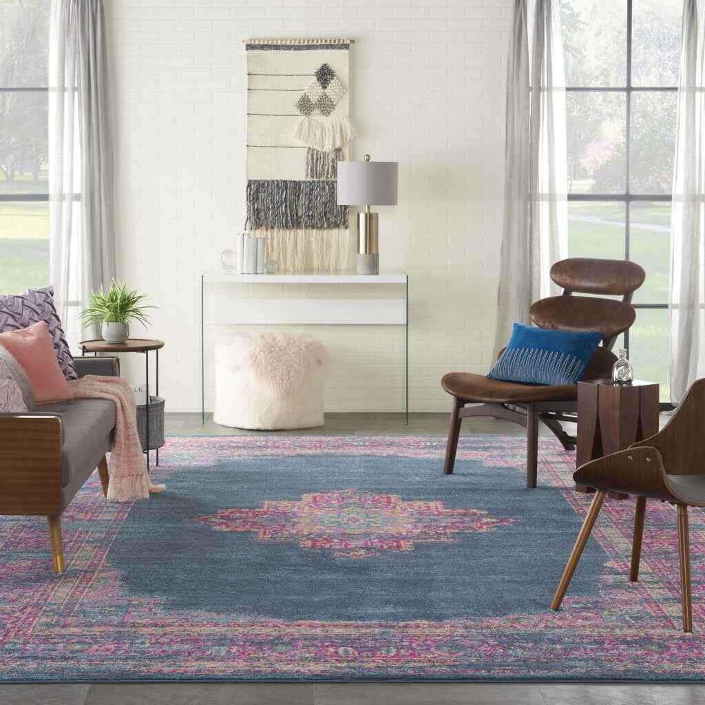 This 9' x 12' blue floral power loom area rug, is a great way to add warmth to a room. This rectangle shaped rug features a floral design in blue to give it visual interest. A classic shape marries with good looking design for your space This superior Turkish rug represents the highest quality and is built to last. Area Rugs help to give warmth and sense of home to your space. .50" H x 108.00" W x 144.00" D