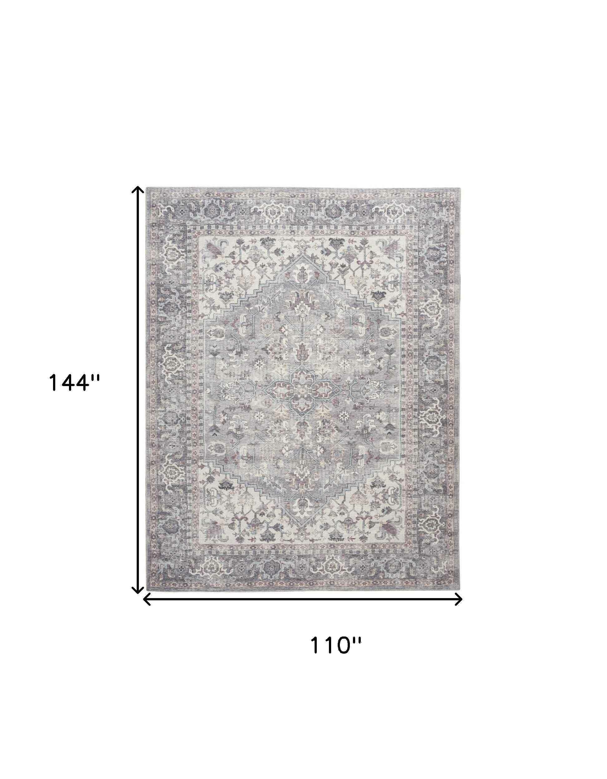 9' X 12' Gray Floral Power Loom Distressed Area Rug