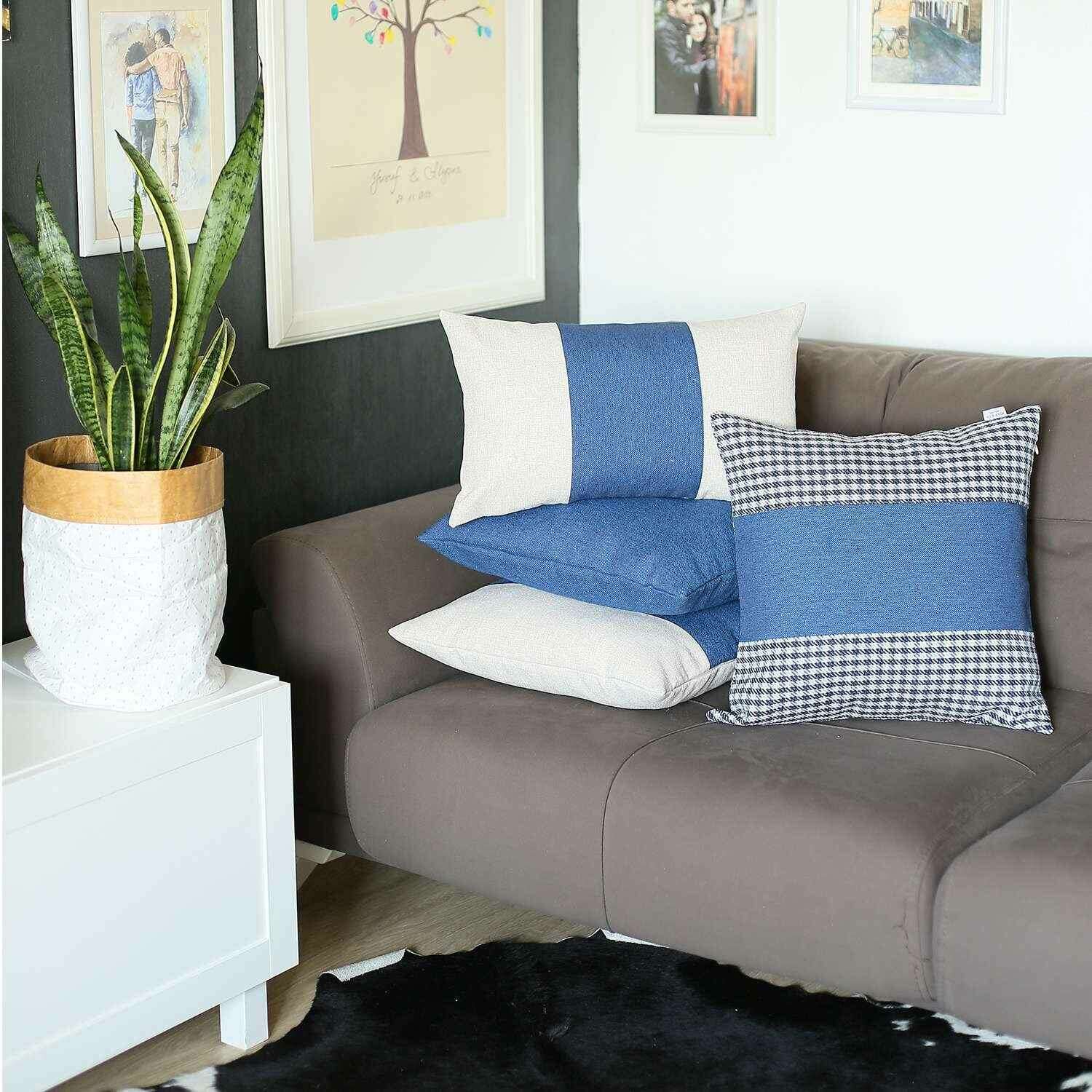 White and Blue Midsection Lumbar Throw Pillow