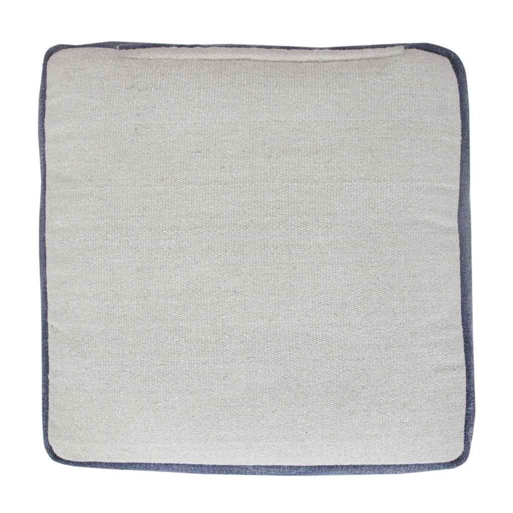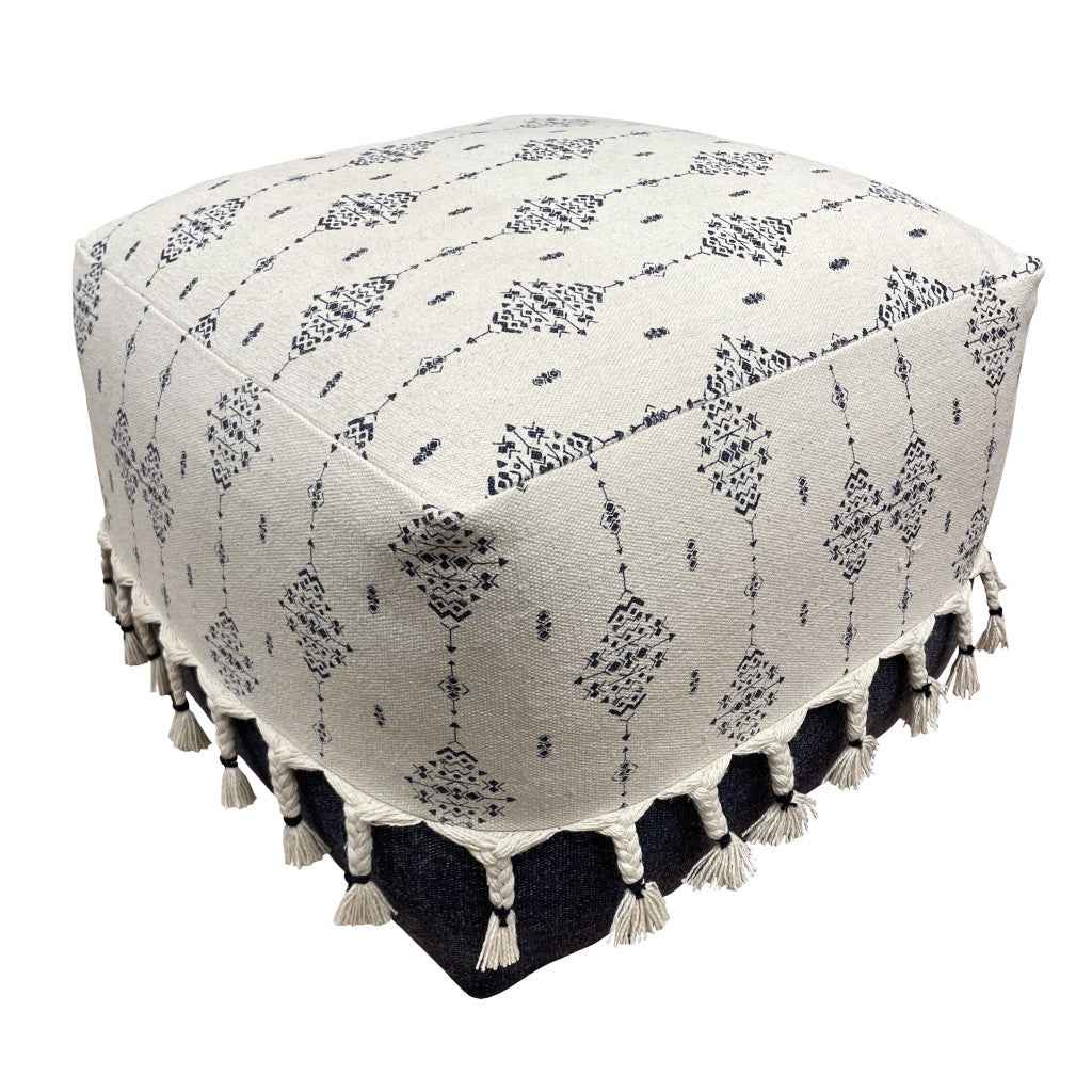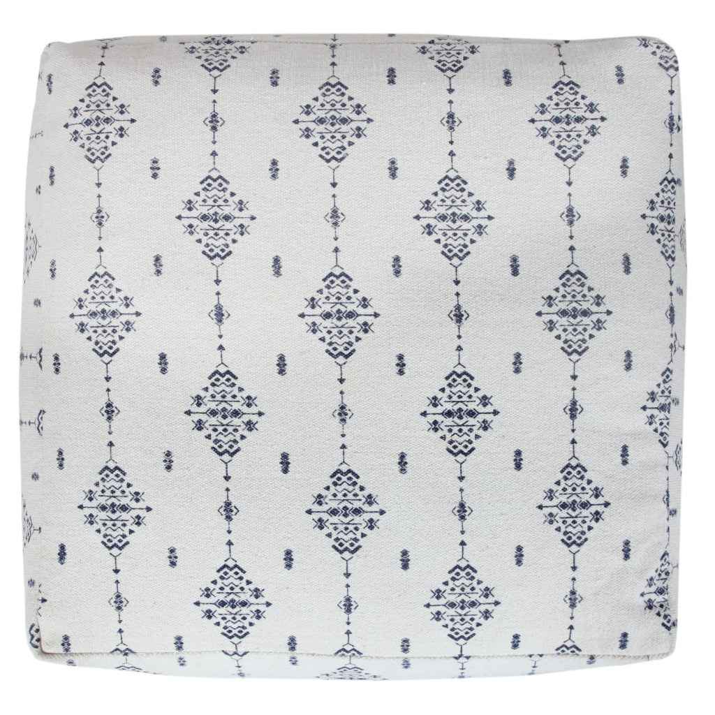 18" Natural And Navy Blue Cotton Medallion Pouf Ottoman