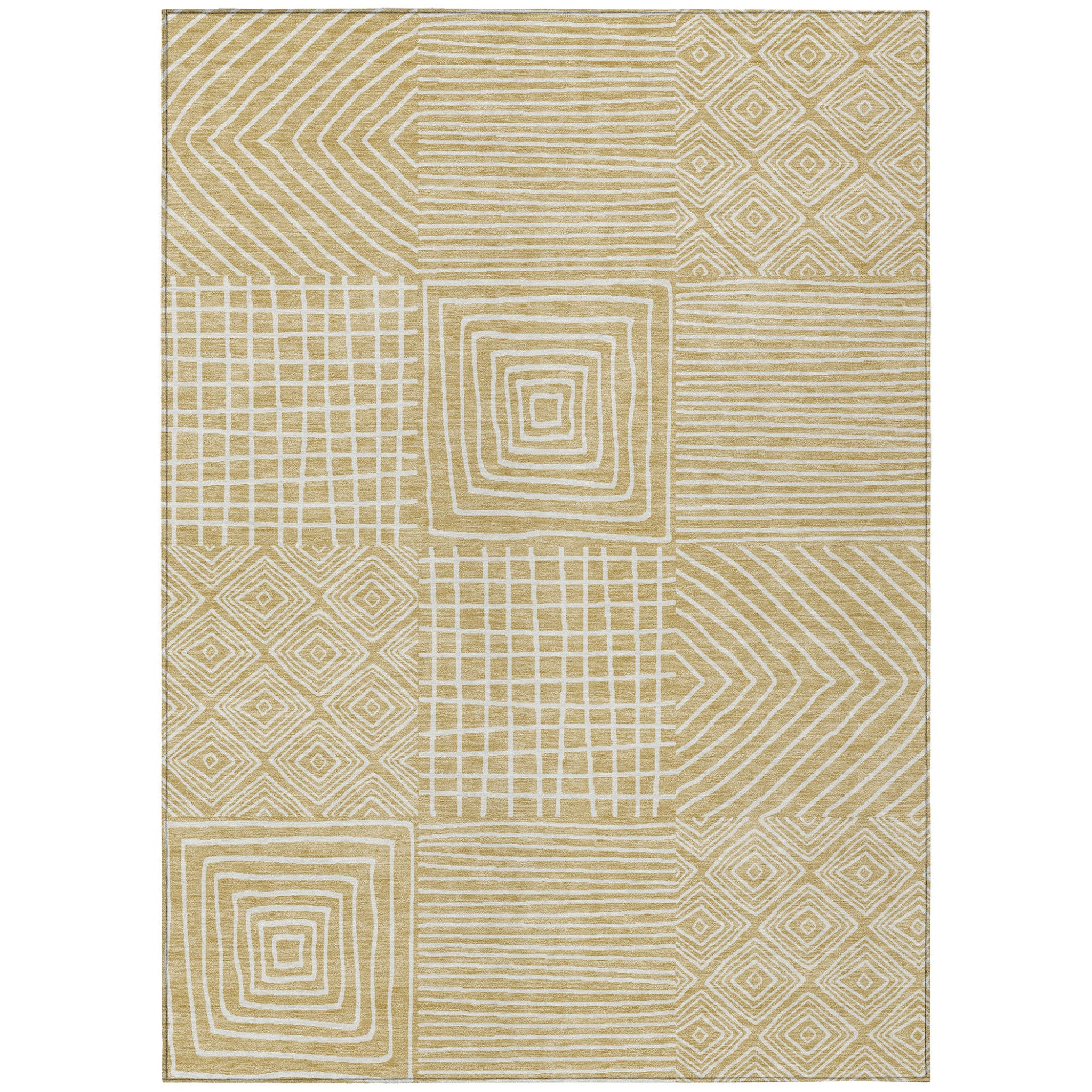 3' X 5' Wheat And Ivory Geometric Washable Indoor Outdoor Area Rug