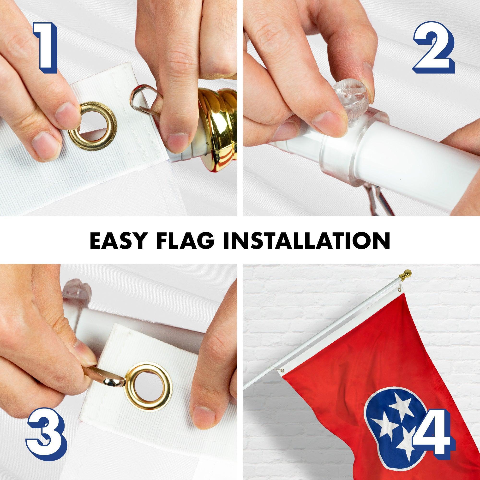G128 - 6 Feet Tangle Free Spinning Flagpole (White) Tennessee Flag Brass Grommets Embroidered 3x5 ft (Flag Included) Aluminum Flag Pole