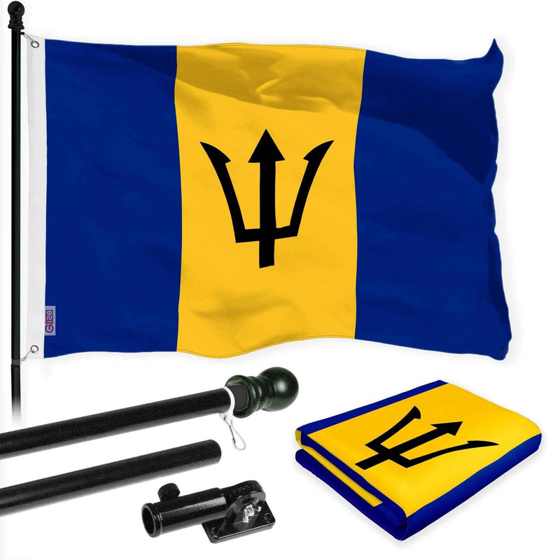 G128 Combo Pack: 6 Ft Tangle Free Aluminum Spinning Flagpole (Black) & Barbados Barbadian Flag 3x5 Ft, LiteWeave Pro Series Printed 150D Polyester | Pole with Flag Included