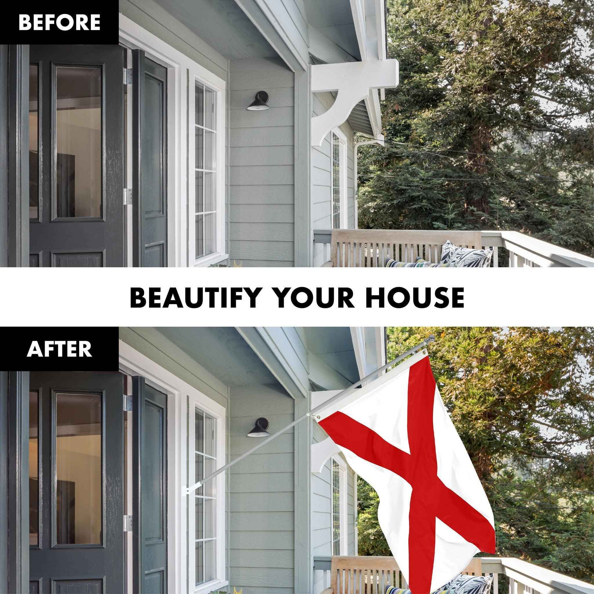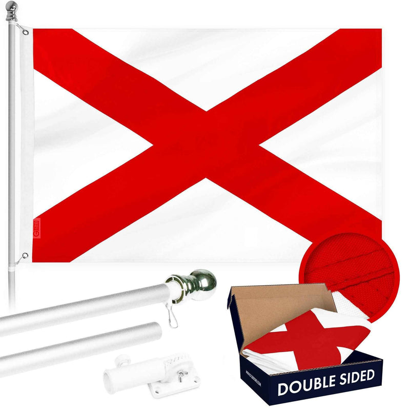 G128 Combo Pack: 6 Ft Tangle Free Aluminum Spinning Flagpole (Silver) & Alabama AL State Flag 3x5 Ft, Double ToughWeave Series Double Sided Embroidered 210D Polyester | Pole with Flag Included