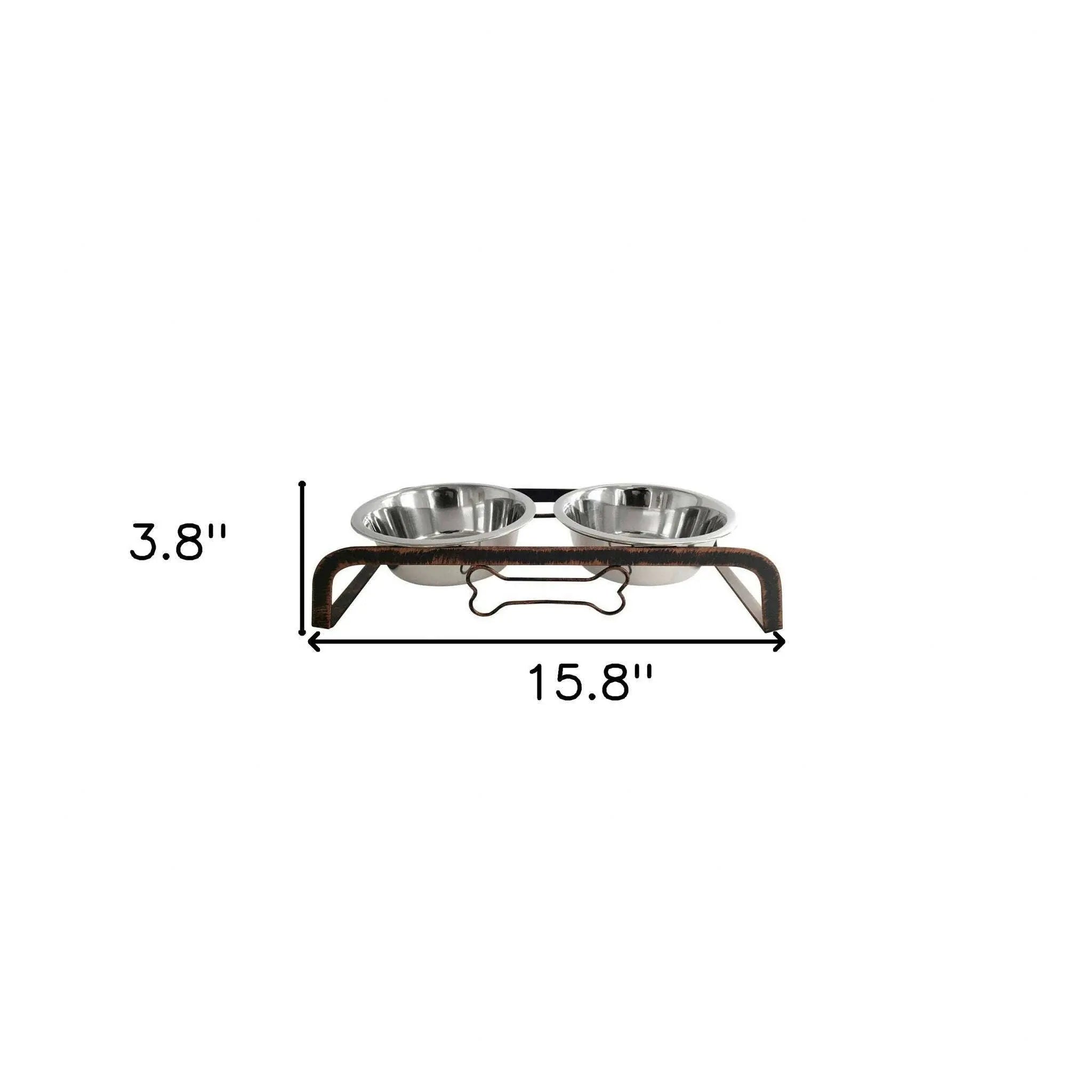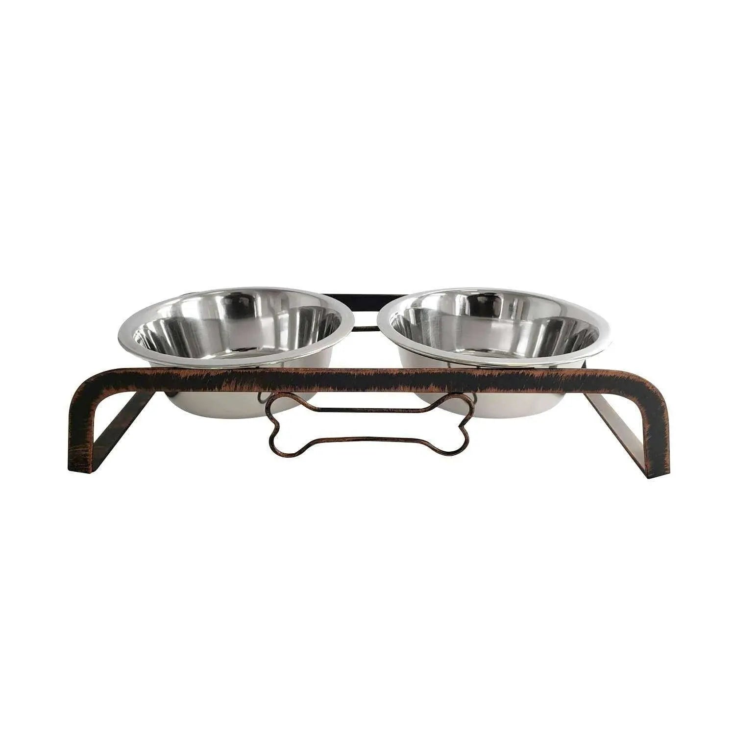 Rustic Elevated 16oz Two Bowl Dog Feeding Station