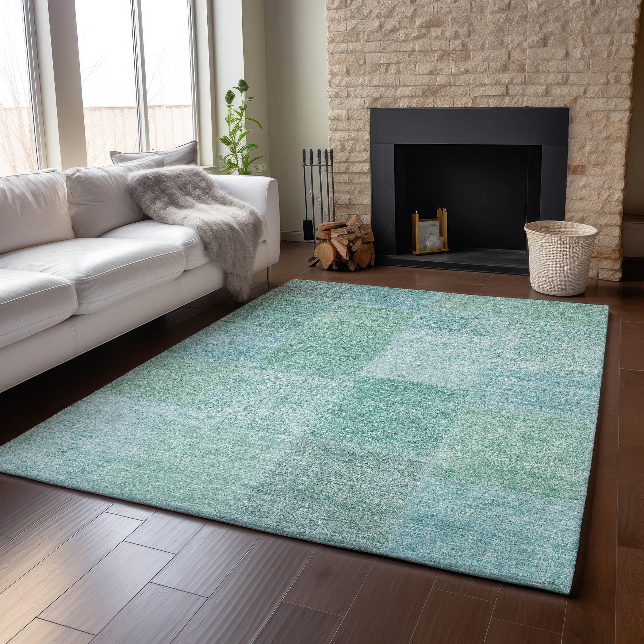10' X 14' Teal And Ivory Patchwork Washable Area Rug With UV "> "> Passer au contenu