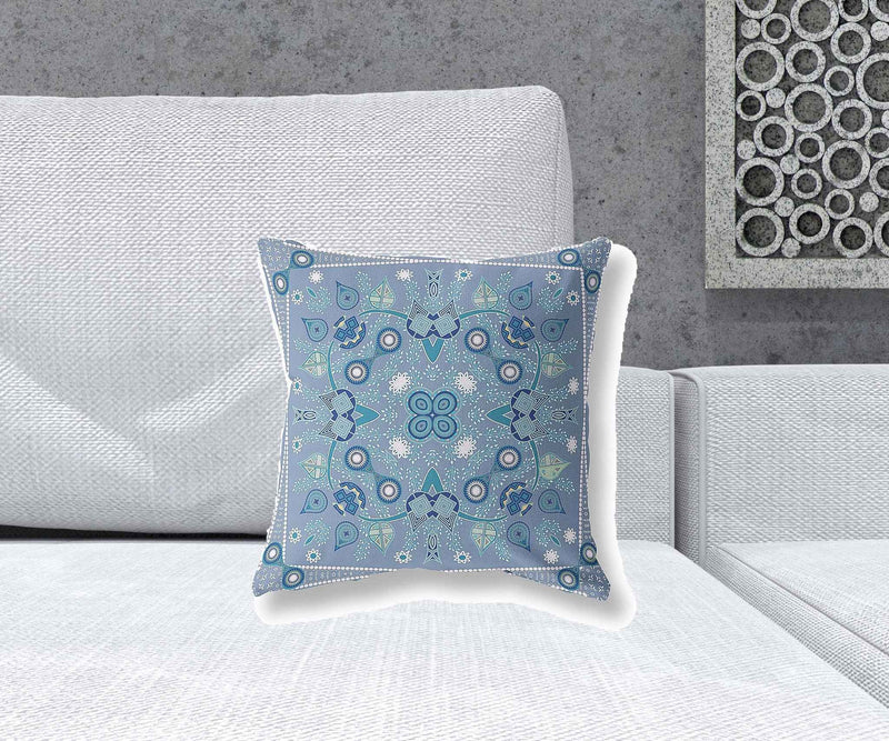 16" X 16" Muted White Blown Seam Floral Indoor Outdoor Throw Pillow