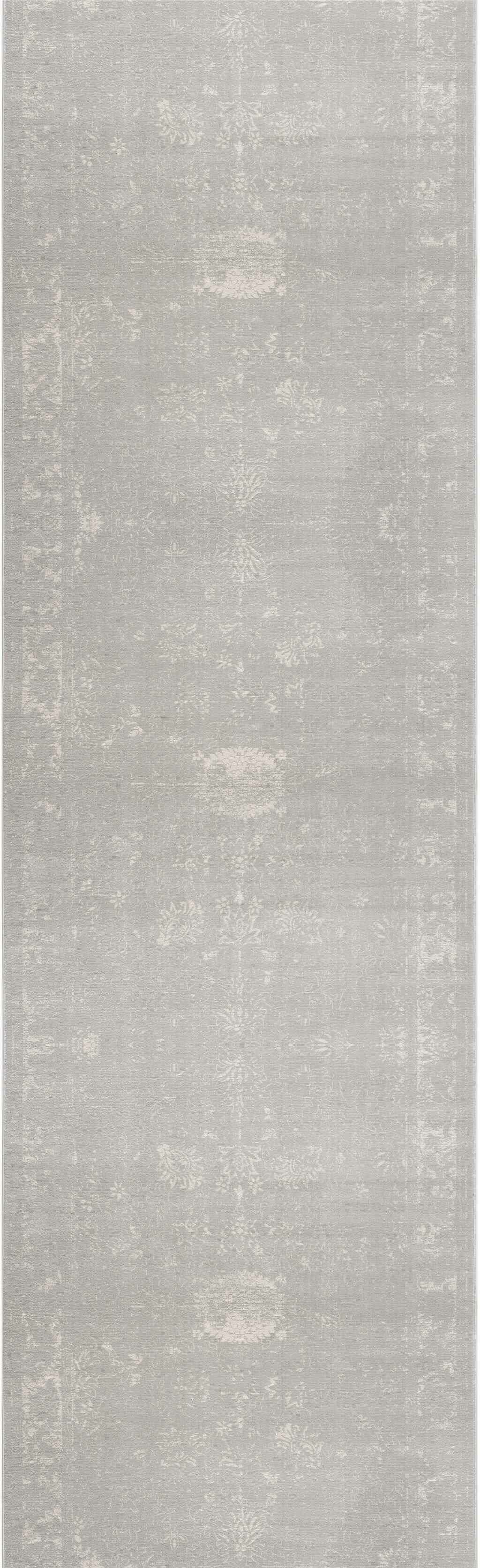 Keeping the look sleek and simple, you can uplift the aesthetics of your living space with this Modern Gray Distressed Runner Rug. The sophisticated solid gray base with an ivory undertone creates a timeworn distressed effect that can be paired with coordinating solid shades or variegated prints and patterns for a whimsical yet unifying look. Incorporating 100% polypropylene fibers in the making, this rug is skillfully crafted in Turkey to ensure enhanced durability and stain resistance for indoor areas with high foot traffic. The refined look and visual sheen come from the low pile construction that adds to its surface interest and provides a soft and cozy underfoot. Place this versatile runner rug against a bold or neutral backdrop for a harmonizing balance or a striking contrast. 96” x 27” x 0.4”