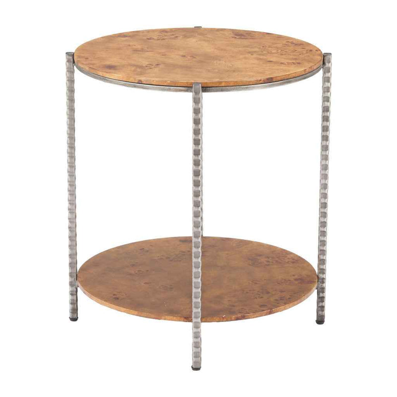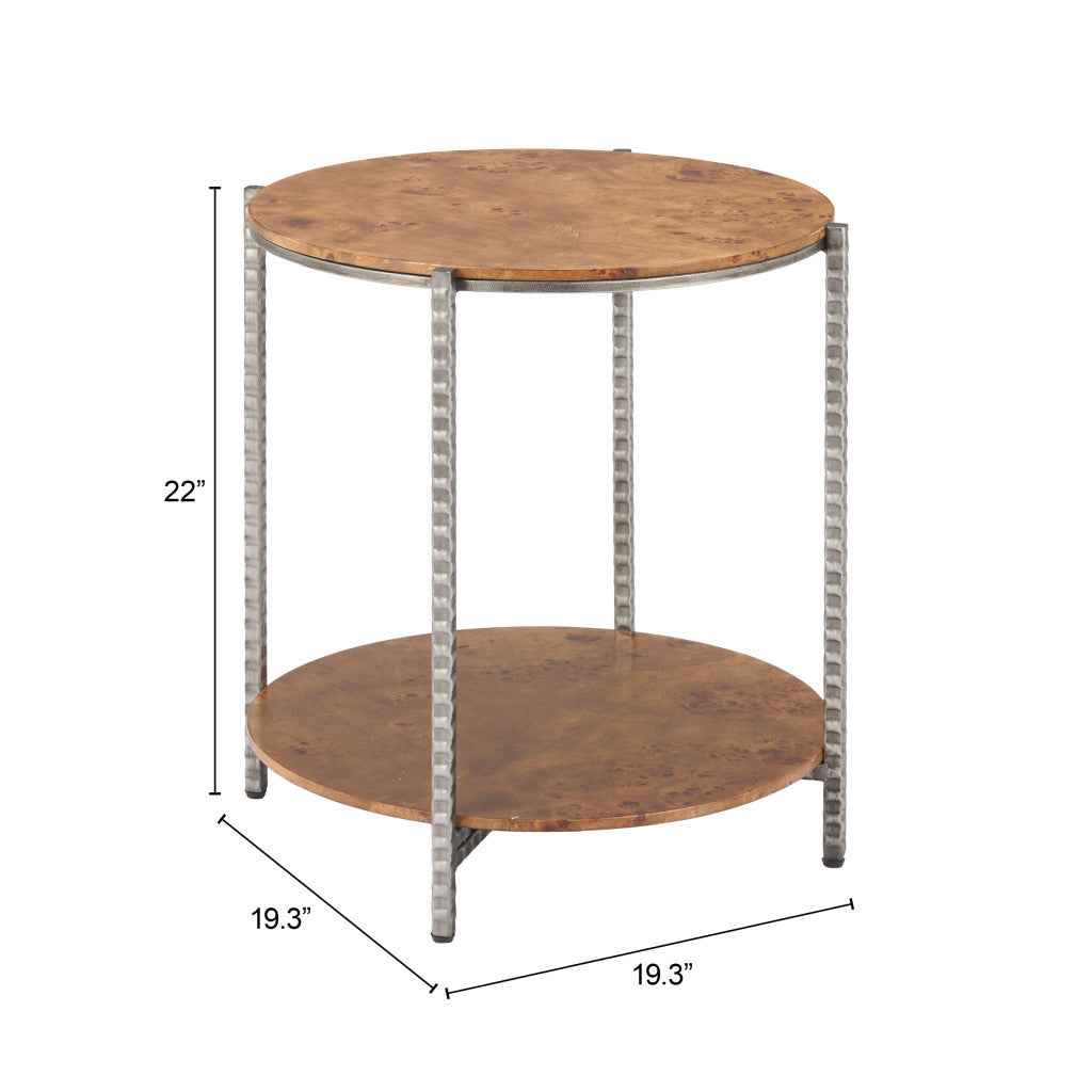 22" Natural and Silver Wood and Steel Round End Table With Shelf