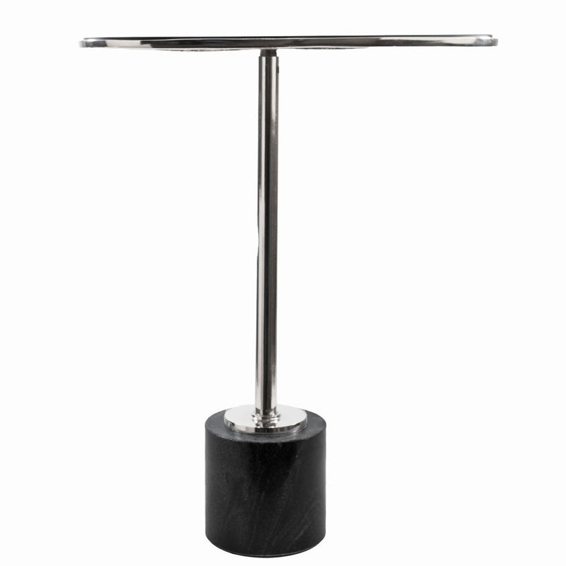 22" Smoky Black and Silver Aluminum Glass and Marble Pedestal End Table