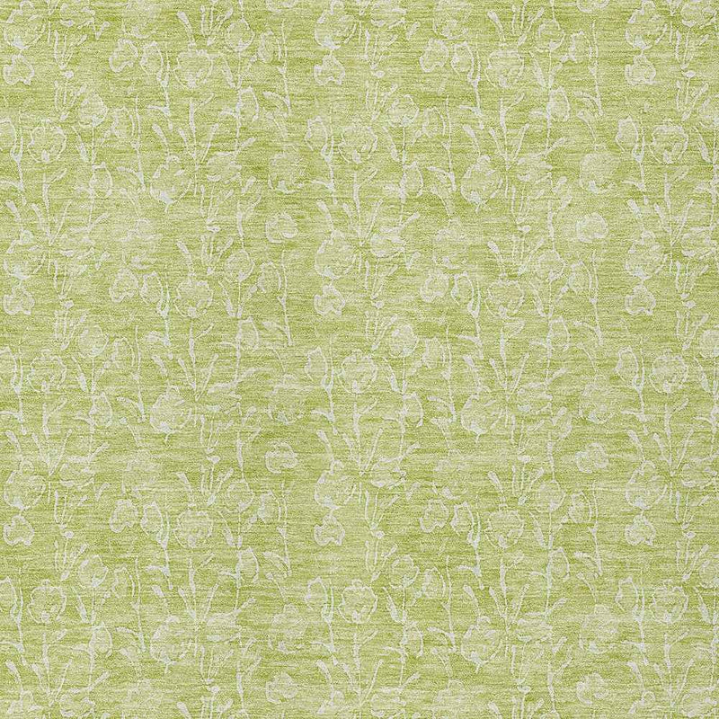 3' X 5' Artichoke Green And Ivory Floral Washable Indoor Outdoor Area Rug