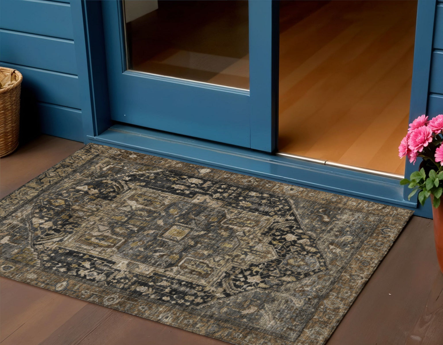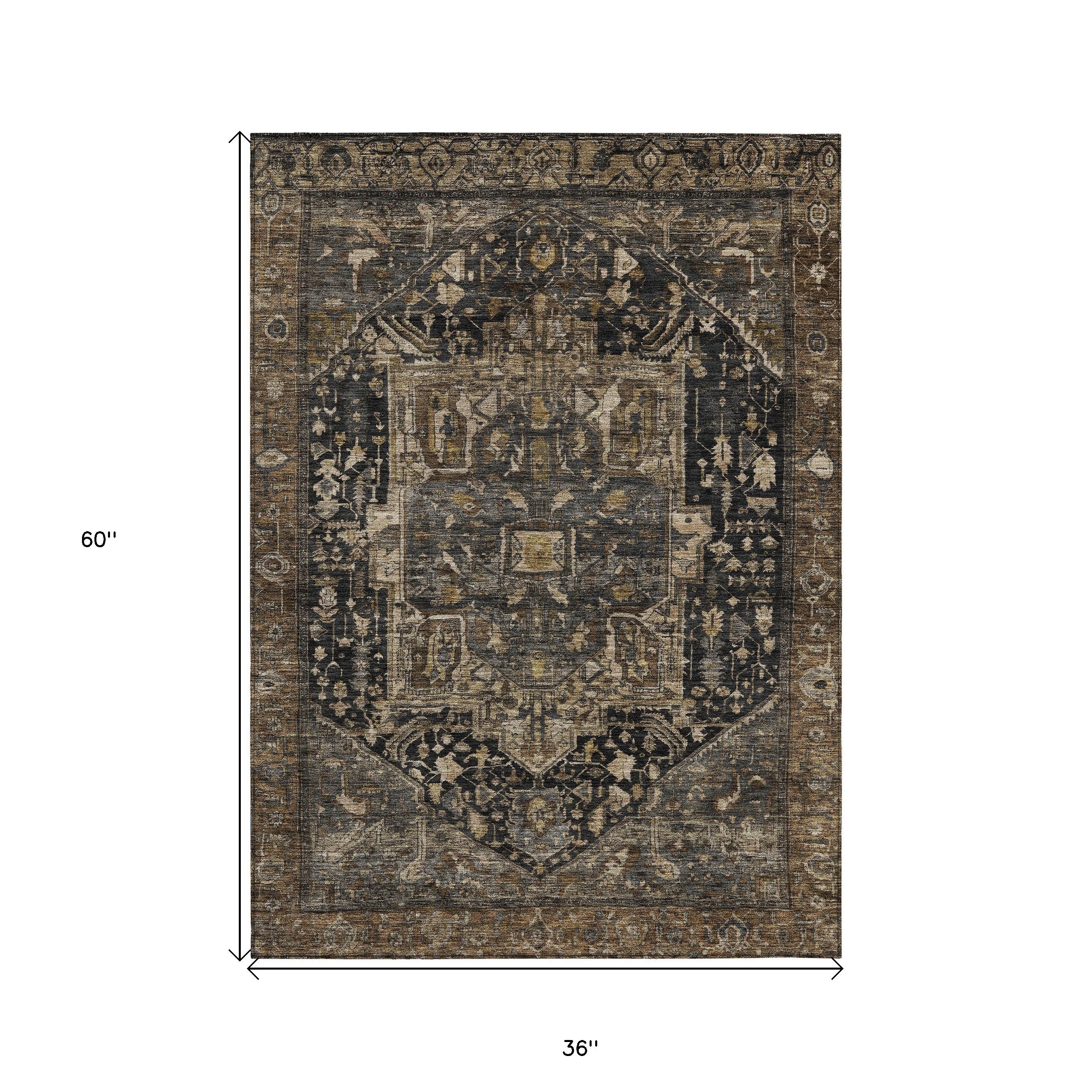 3' X 5' Brown Medallion Washable Indoor Outdoor Area Rug