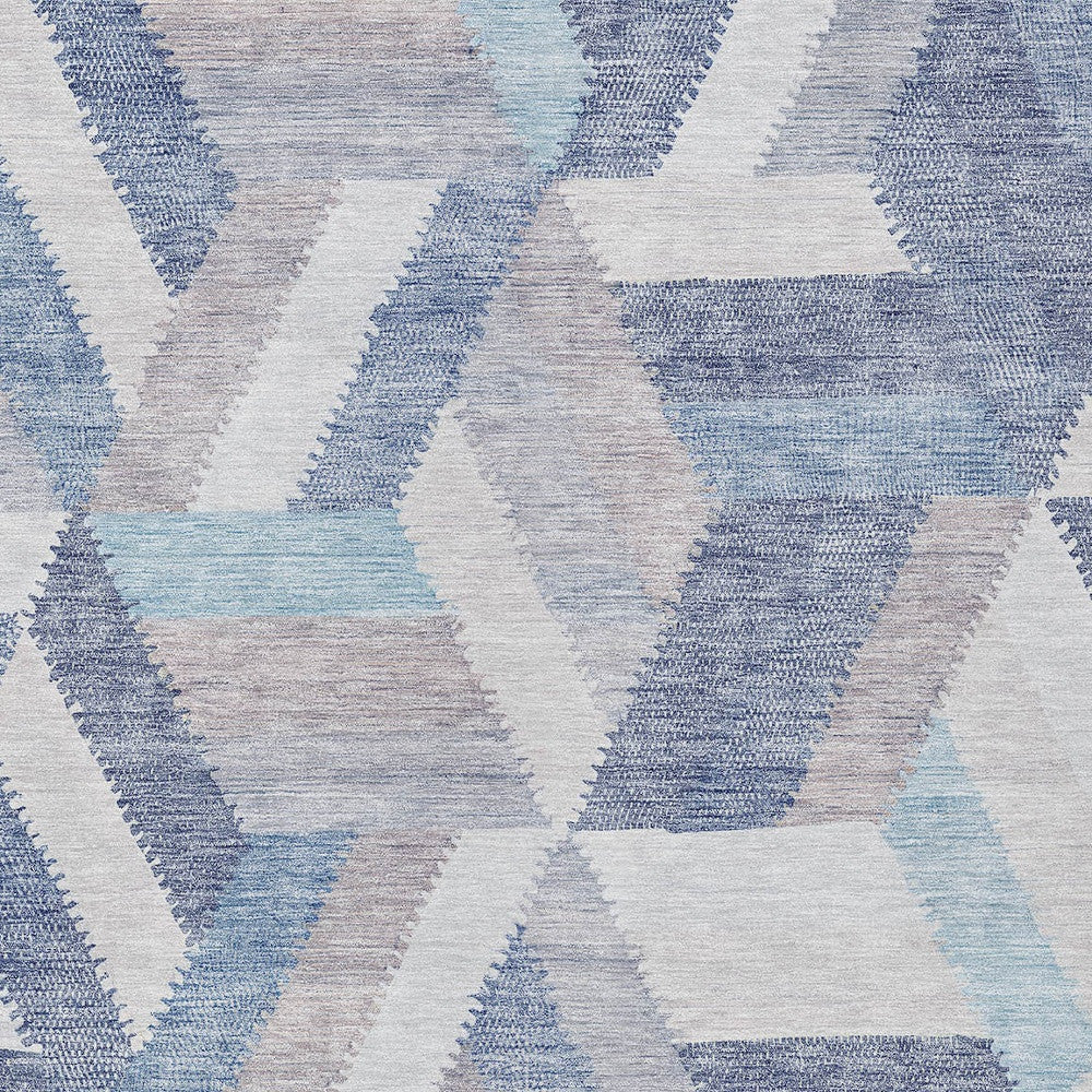 3' X 5' Denim Blue Geometric Washable Indoor Outdoor Area Rug