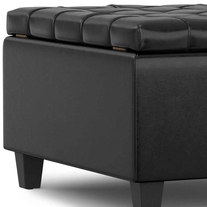30" Black Leather Cocktail Ottoman With Storage Passer au contenu