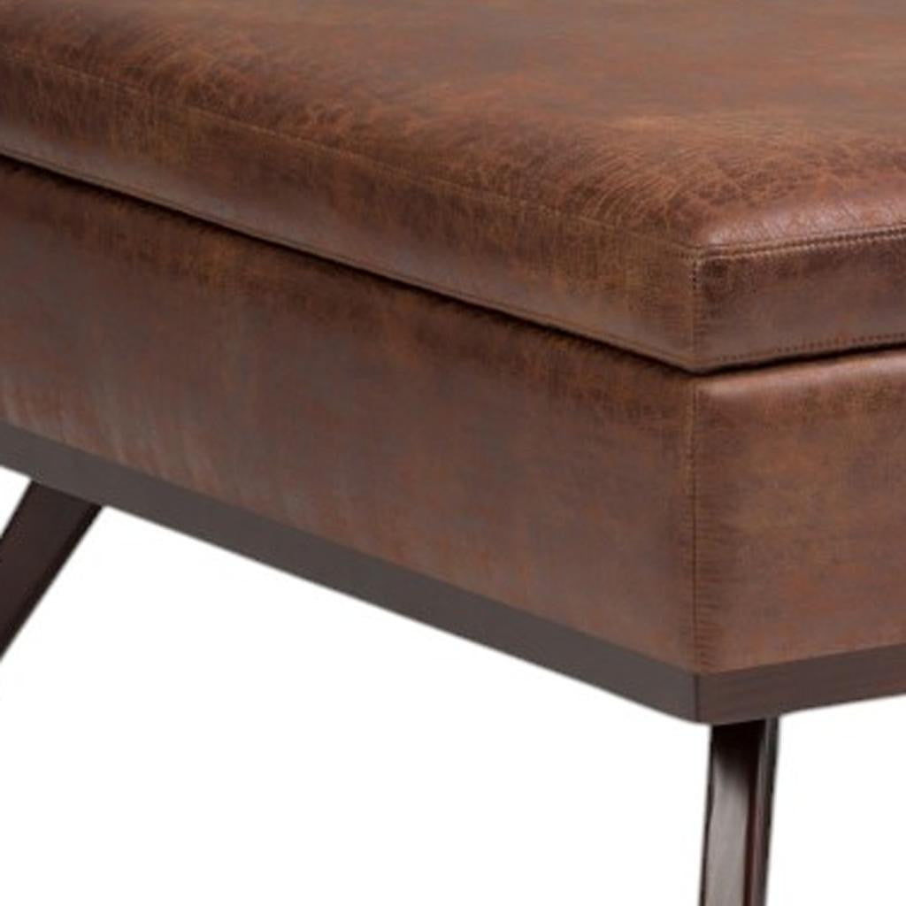 36" Brown Leather Cocktail Ottoman With Storage