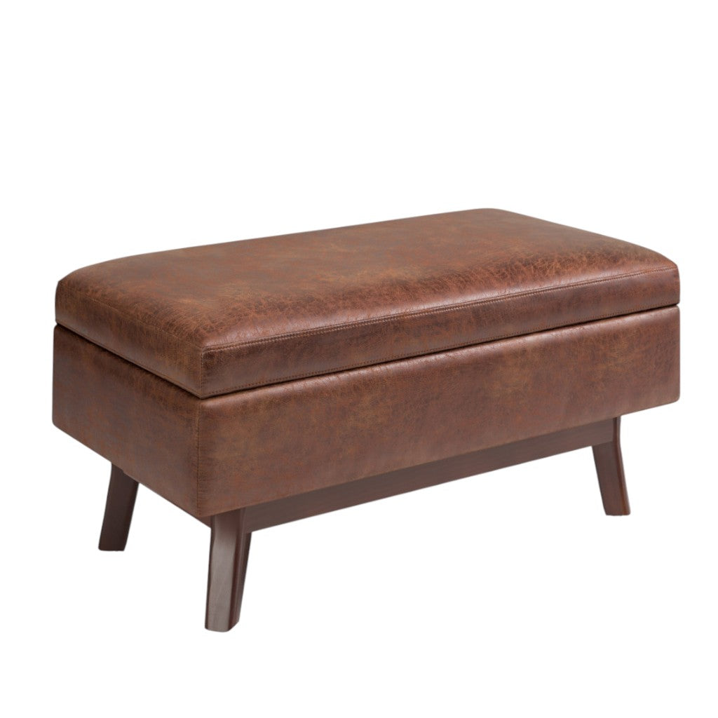 36" Brown Leather Cocktail Ottoman With Storage