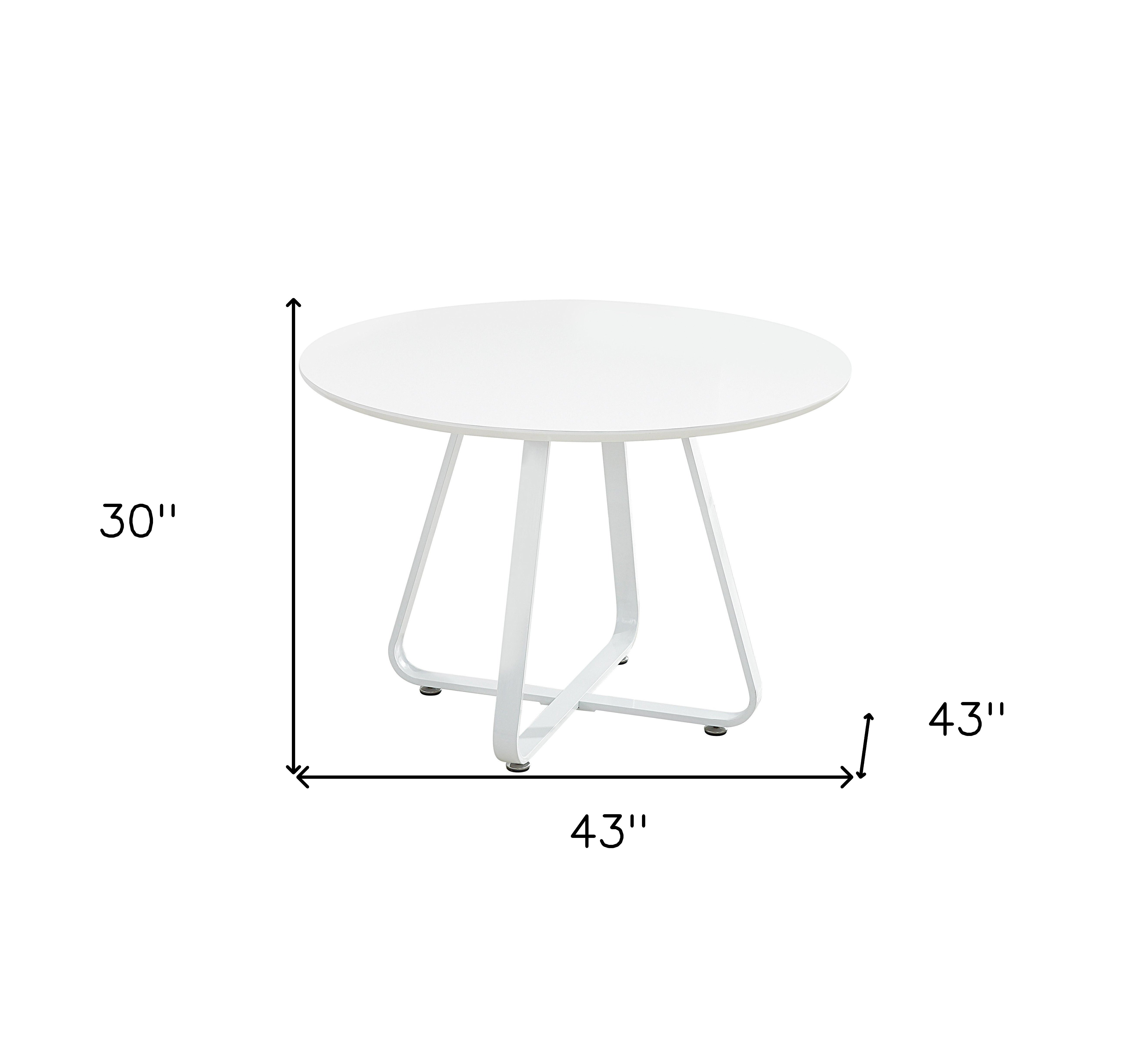 43" White Wood and Metal Sled Base Round Top Dining Table