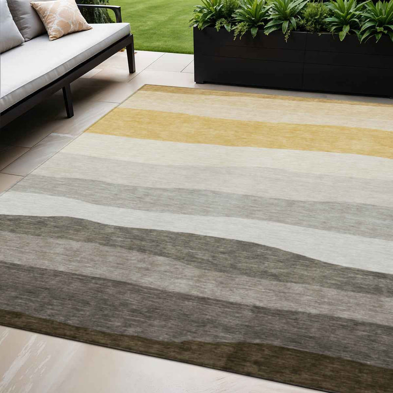 5' X 8' Pewter Gold And Ivory Striped Washable Indoor Outdoor Area Rug