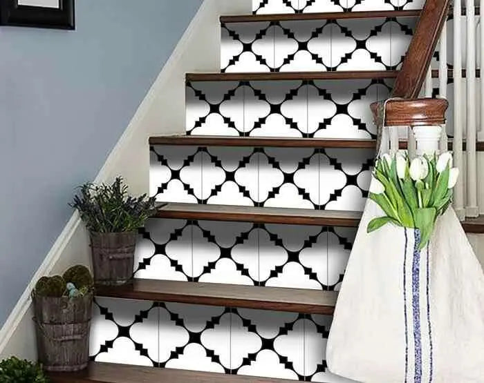 The possibilities are endless with these 7" x 7" Black and White Tri Peel and Stick Removable Tile stickers. These fabulous peel and stick tiles will add lots of color, sophisticated flair, and fun design to your kitchen backsplash, fireplace mantel, stair treads, half wall, bathroom or nook. These 7" square tile stickers in multiple bright fun colors and designs are an easy, no mess solution to complete a personalized and colorful room makeover. Easy to apply on any clean dry flat surface, and easy to remove. Multi use and multi-room appeal make this design option is perfect for renters, landlords, college students and homeowners alike. Peel and stick tile decals make it easy to turn your space into a home. Removable without damage to surfaces. One kit contains 24 stickers. Single Tile Deisgn.