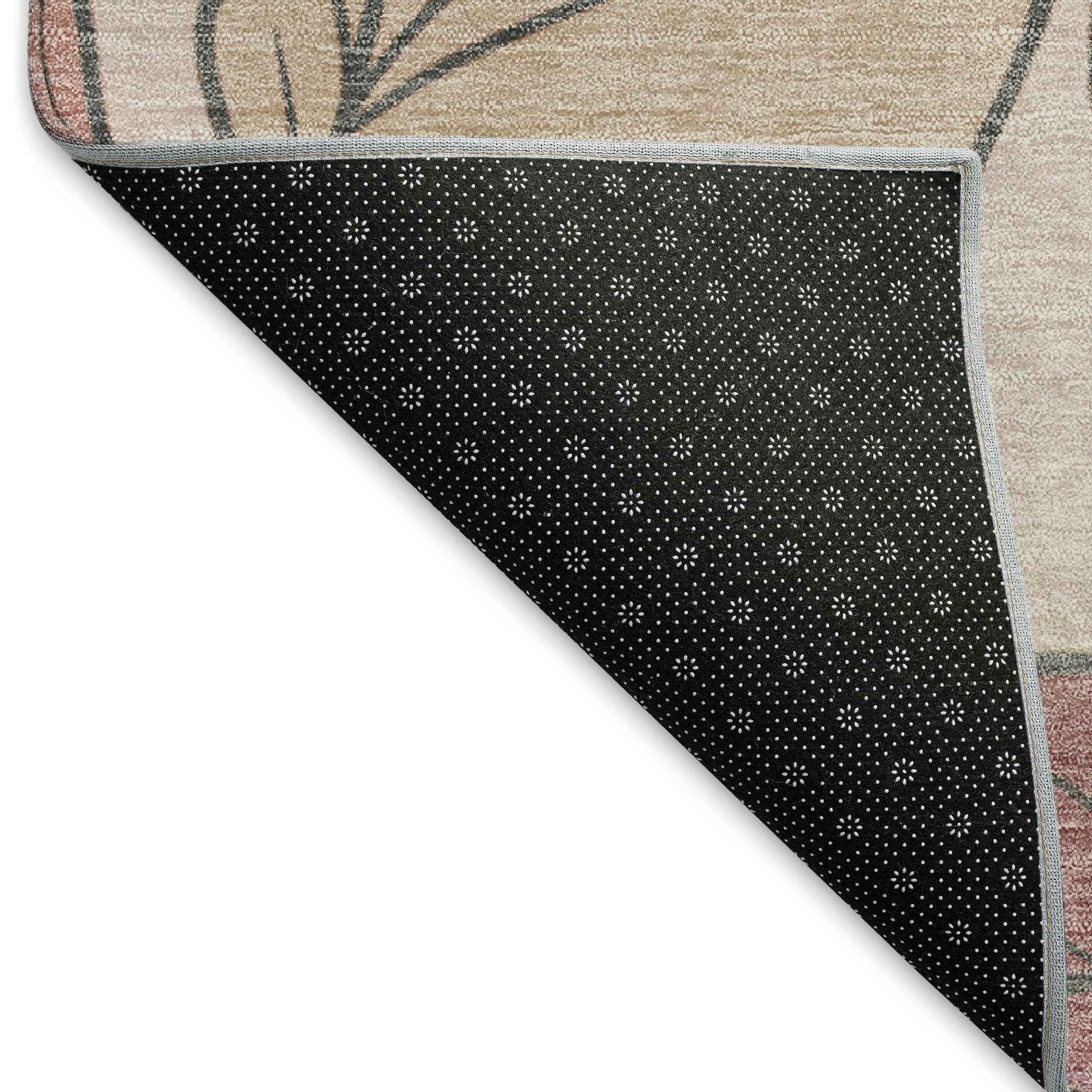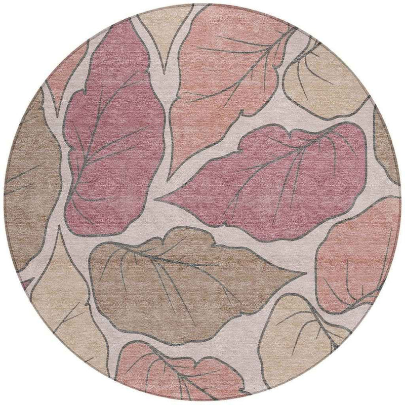 8' Blush And Ivory Round Botanical Leaves Washable Indoor Outdoor Area Rug Default Title