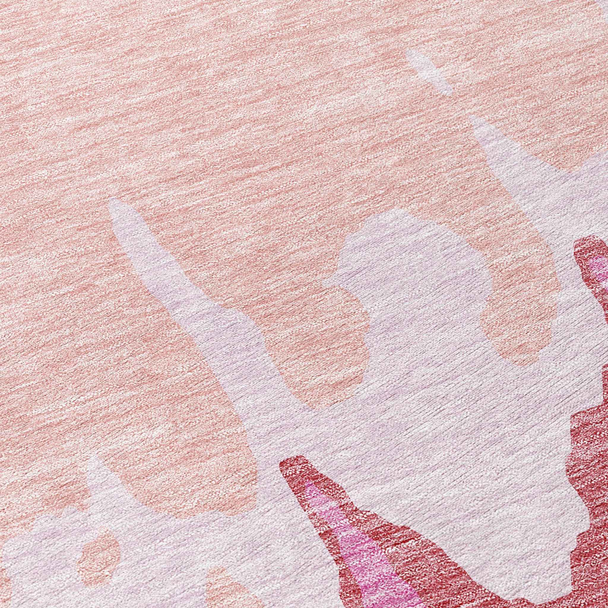 8' Blush And Pink Round Abstract Washable Indoor Outdoor Area Rug