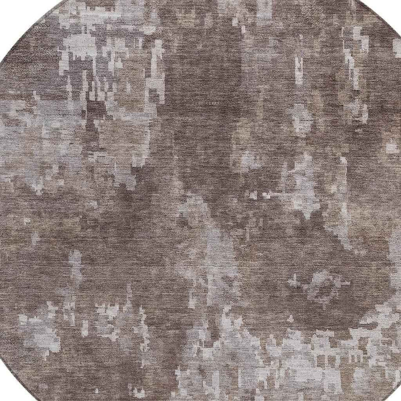 8' Brown And Ivory Round Abstract Washable Indoor Outdoor Area Rug