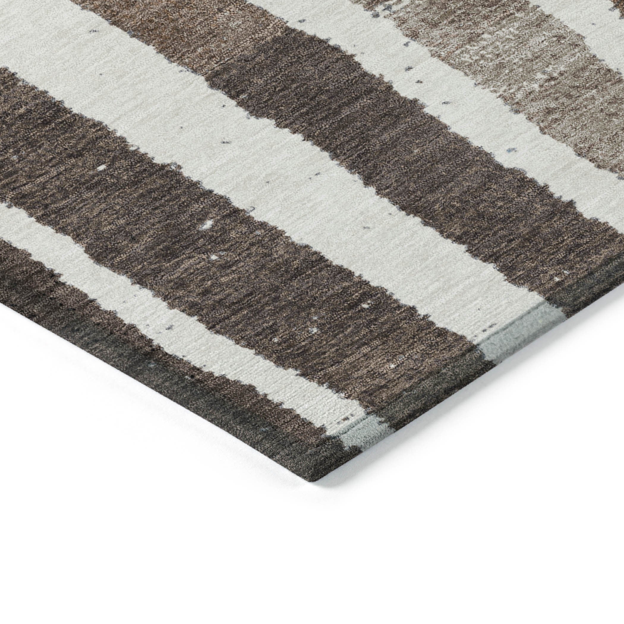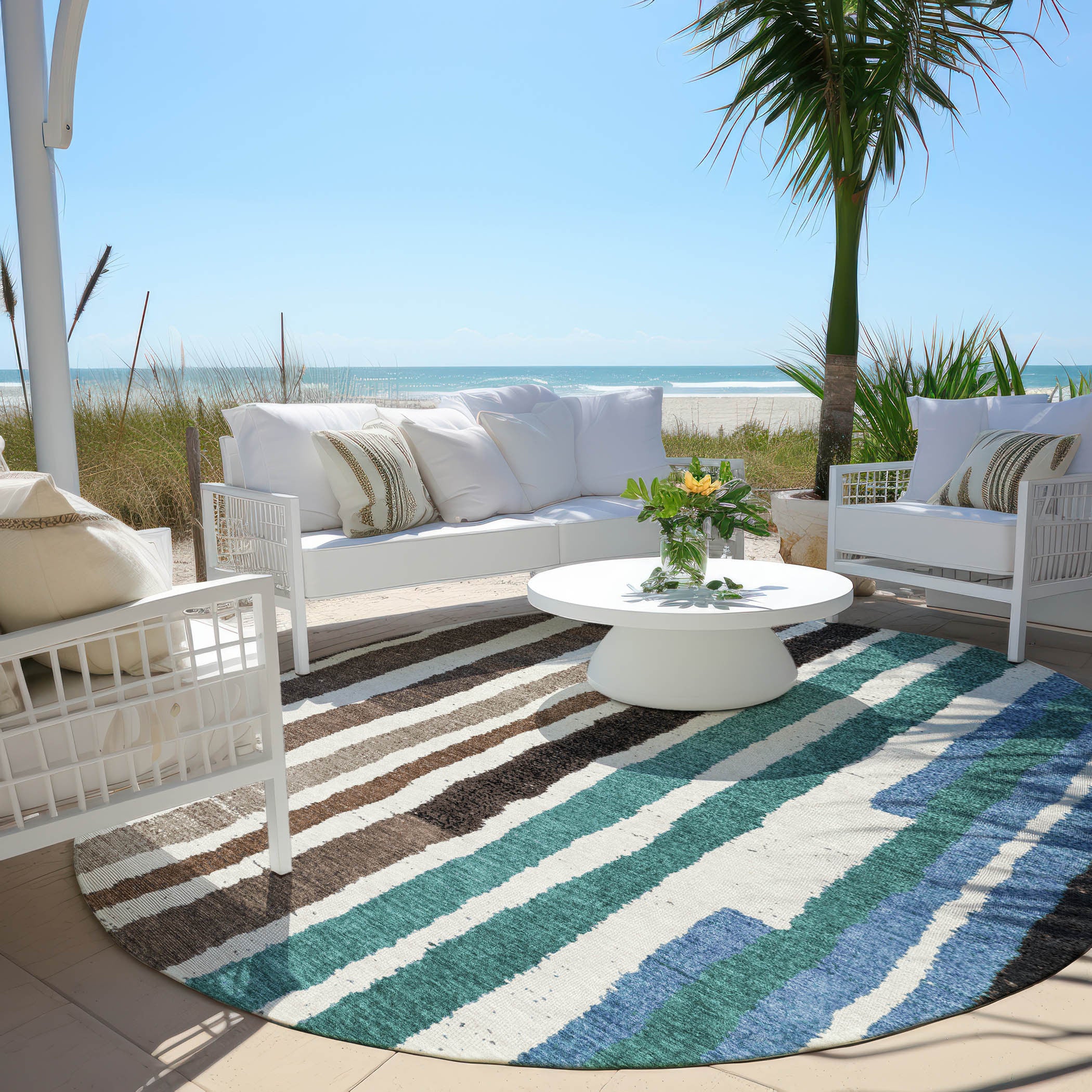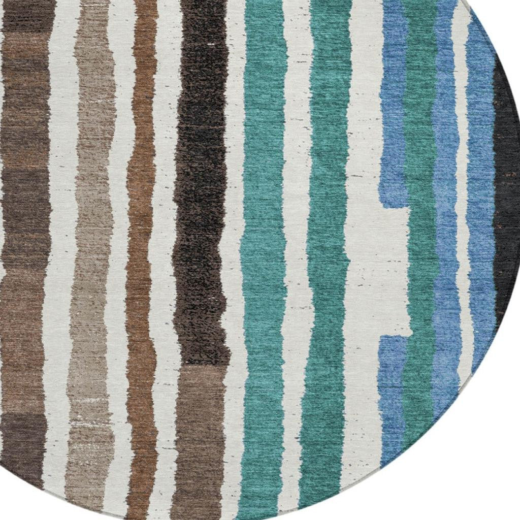 8' Brown Teal Blue And Ivory Round Striped Washable Indoor Outdoor Area Rug