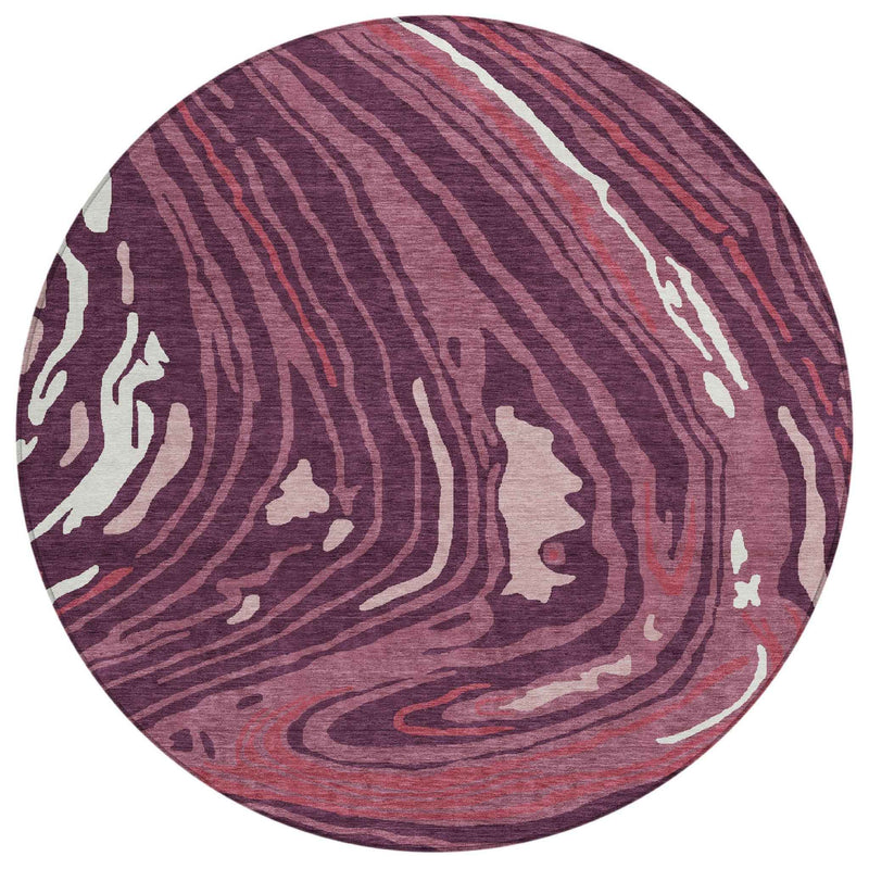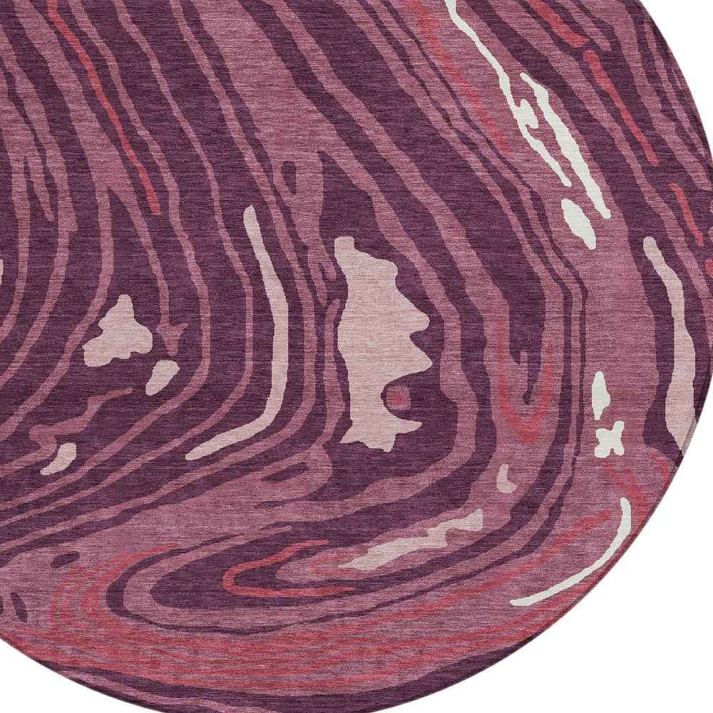 8' Burgundy Brick Red And Ivory Round Abstract Washable Indoor Outdoor Area Rug