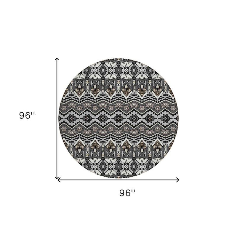 8' Charcoal Brown And Ivory Round Moroccan Washable Indoor Outdoor Area Rug