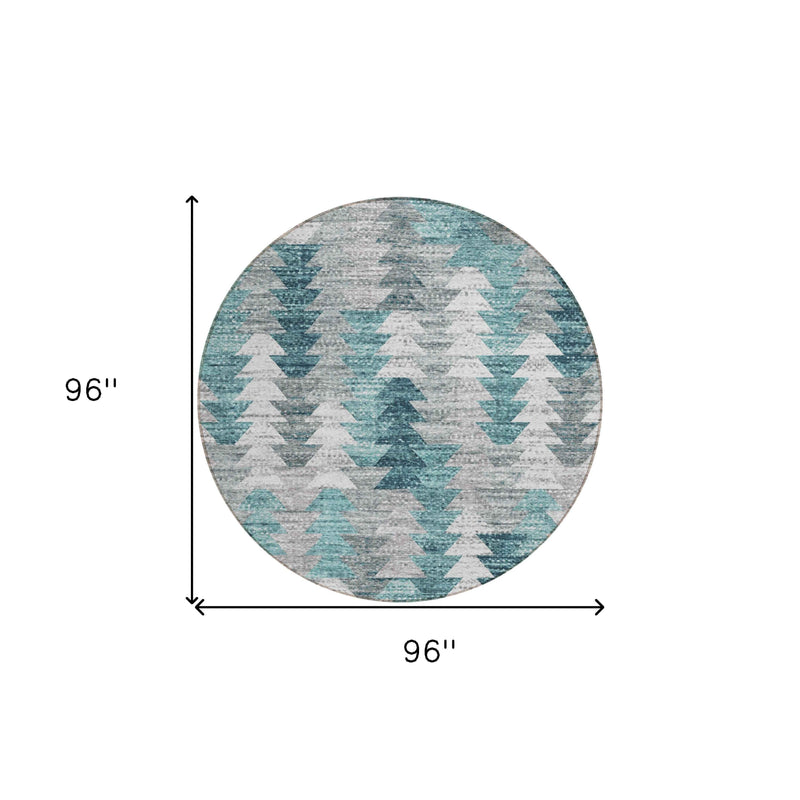 8' Dark Blue Aqua And Gray Round Geometric Washable Indoor Outdoor Area Rug