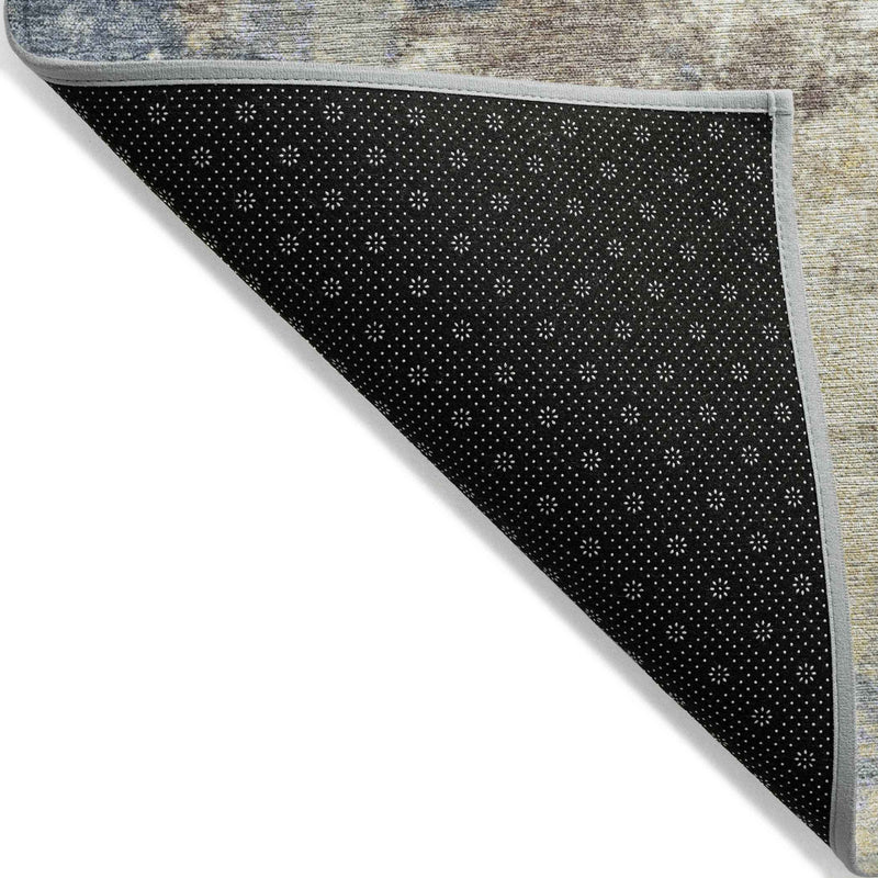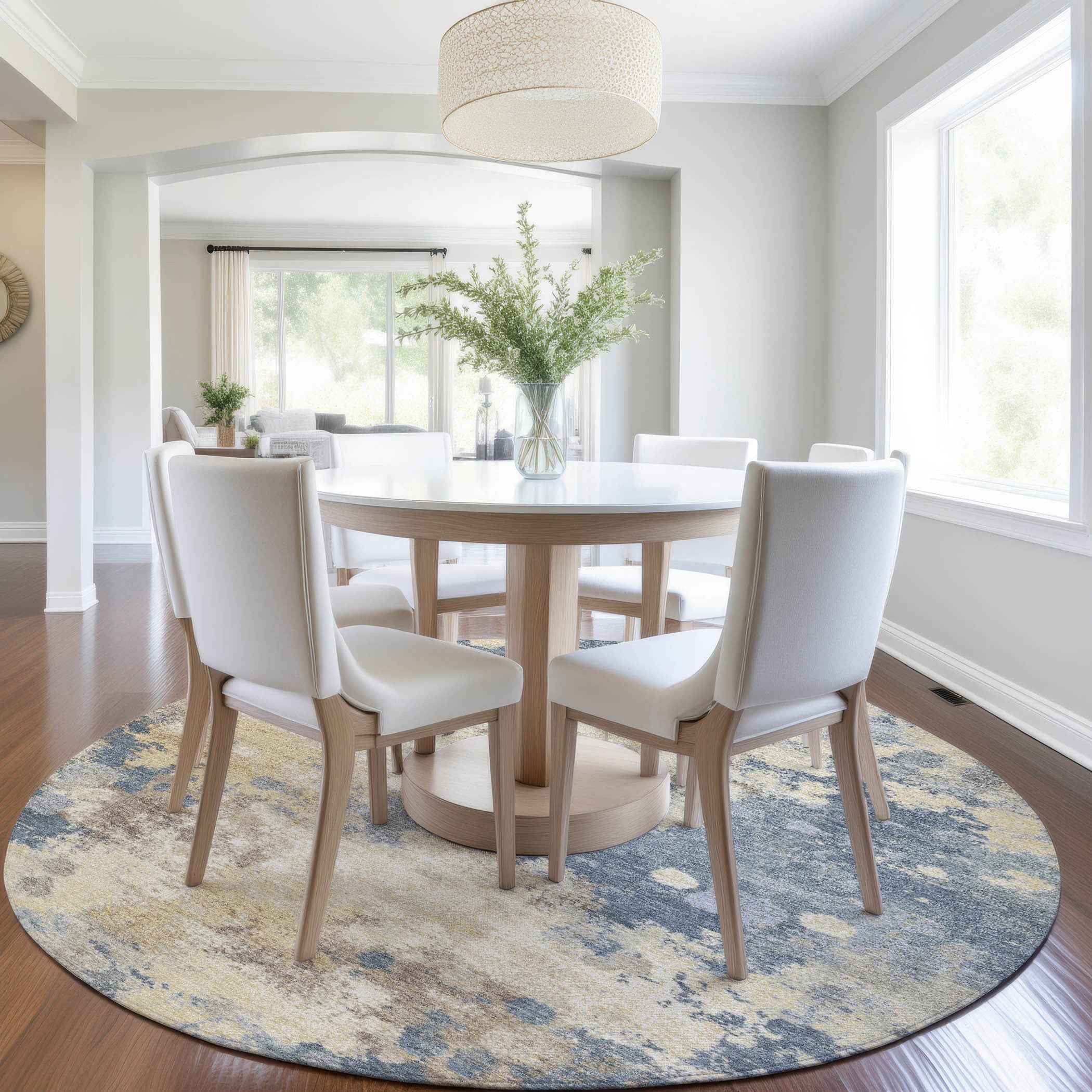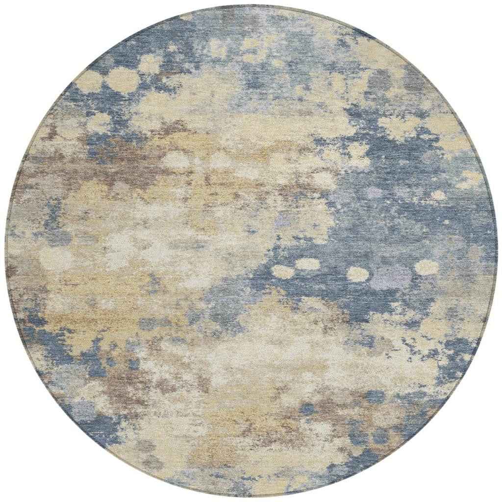 8' Gold And Beige Round Abstract Washable Indoor Outdoor Area Rug