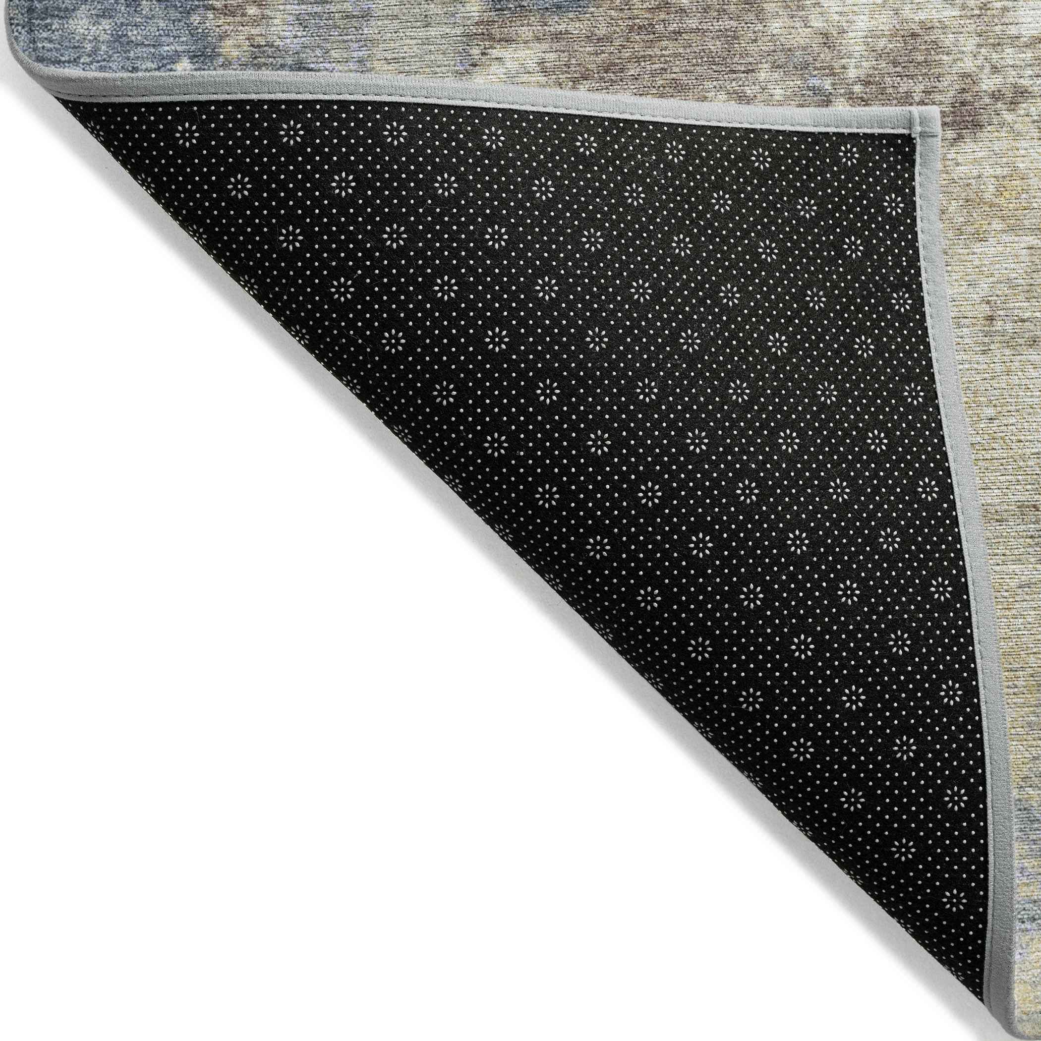Set an inviting tone in your space with this 8-foot gold and beige round abstract washable indoor outdoor area rug. This geometric round shaped rug features a abstract pattern in gold and beige that combines a good looking print with a unique and updated shape. The mix of shape, color, and design gives this rug refreshing visual interest. Ideal for outdoor spaces or high traffic areas with kids and pets, this rug is made from heavy duty polyester that is stain resistant to help repel water, dirt, and stains. Makes a great way to dress up your patio, porch, or poolside, but also works well as a durable and easy to maintain option in the kitchen, family room, or mudroom. 96-inch h x 96-inch w x 0.19-inch d.