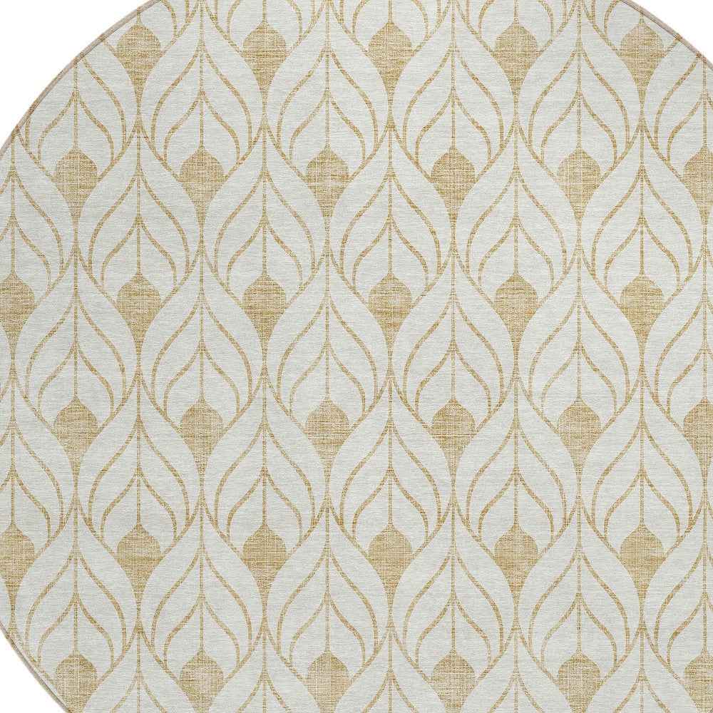 8' Gold And Beige Round Geometric Washable Indoor Outdoor Area Rug