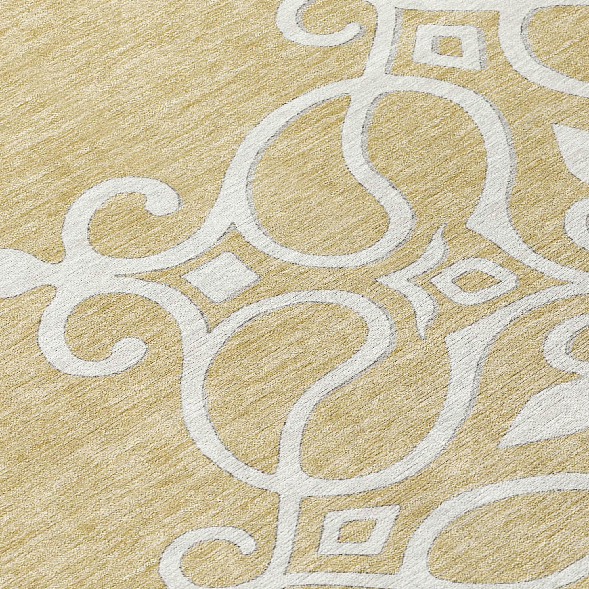 8' Gold Ivory And Gray Round Floral Medallion Washable Indoor Outdoor Area Rug Passer au contenu