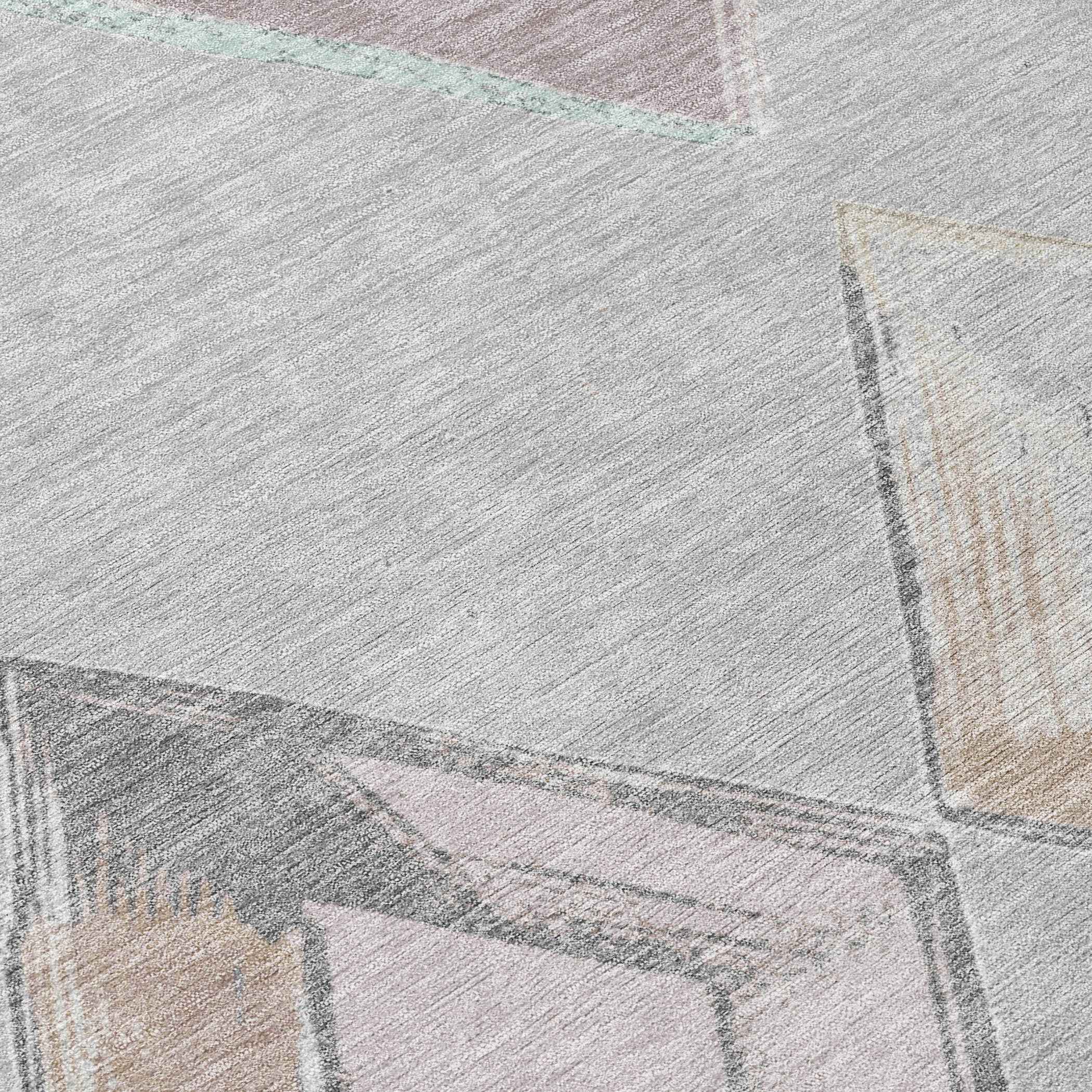 8' Gray Beige And Taupe Round Geometric Washable Indoor Outdoor Area Rug