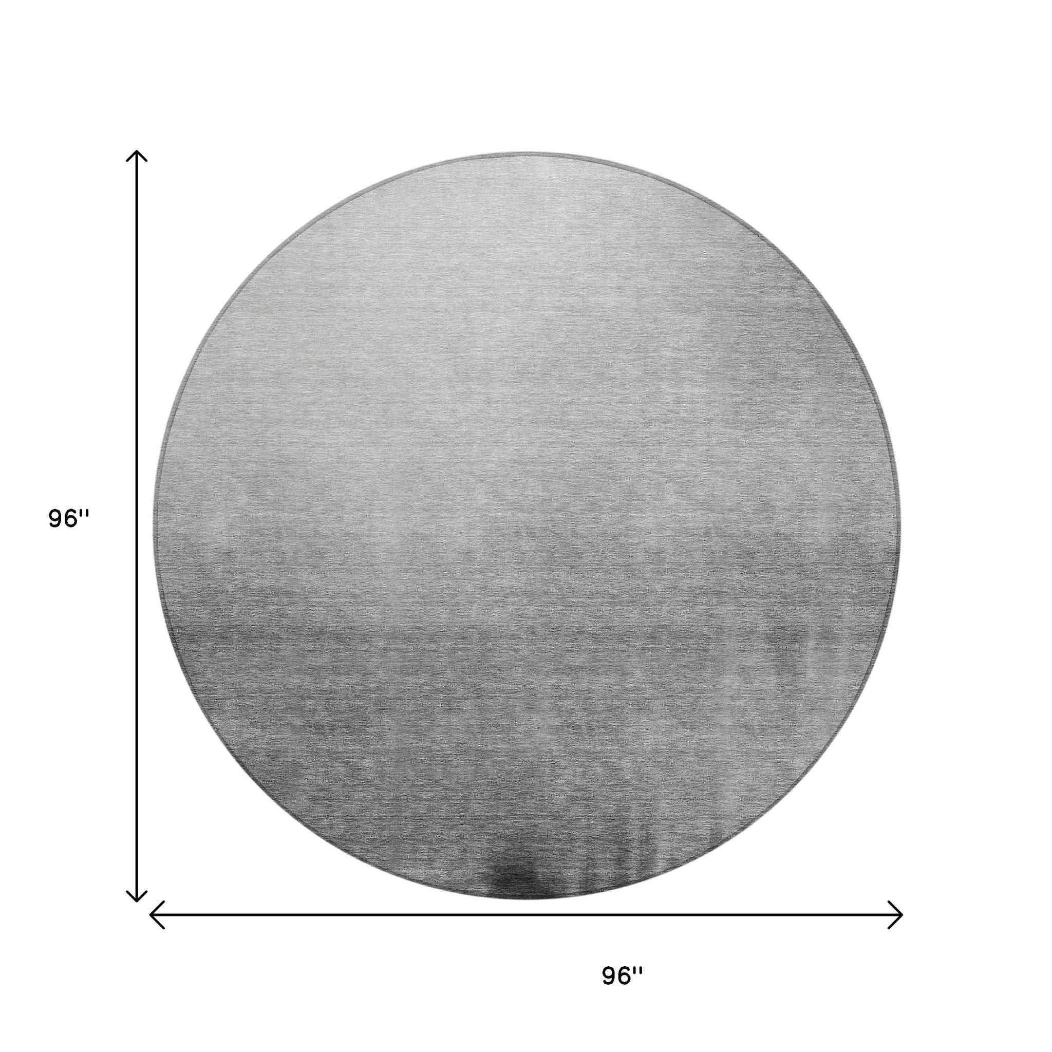 8' Gray Silver And Black Round Abstract Washable Indoor Outdoor Area Rug