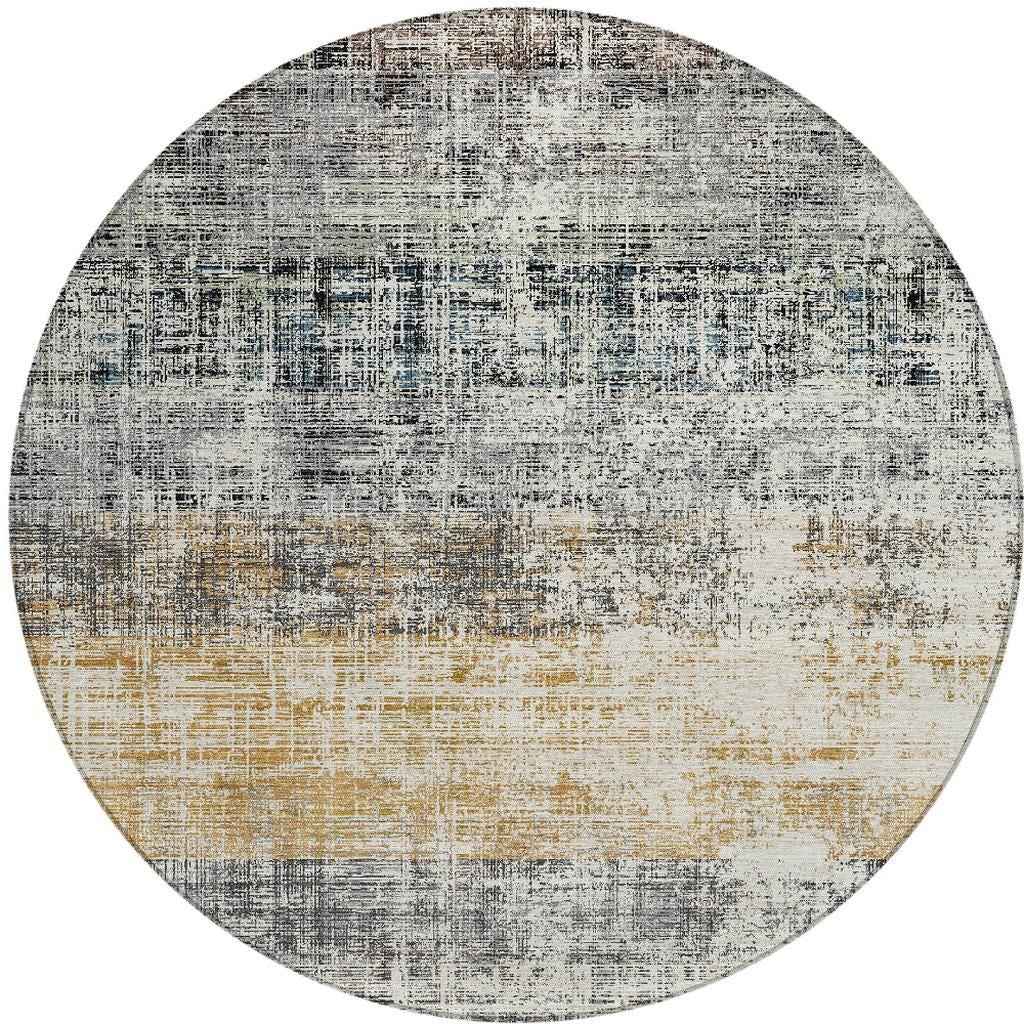 8' Gray Silver And Gold Round Striped Washable Indoor Outdoor Area Rug