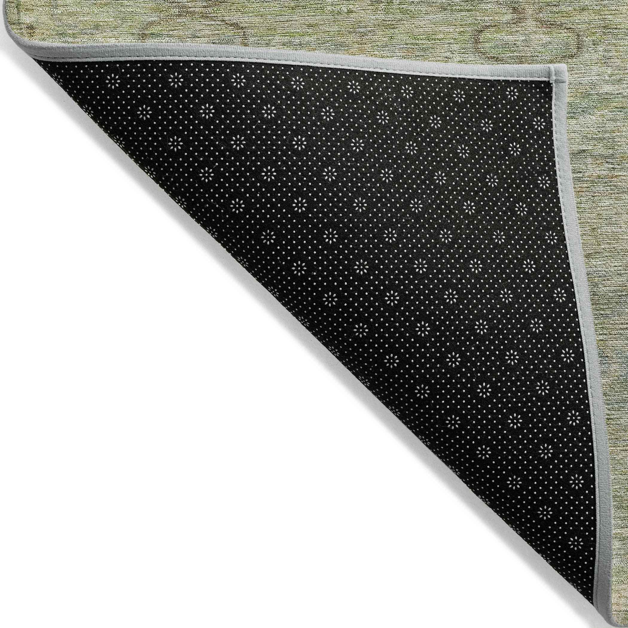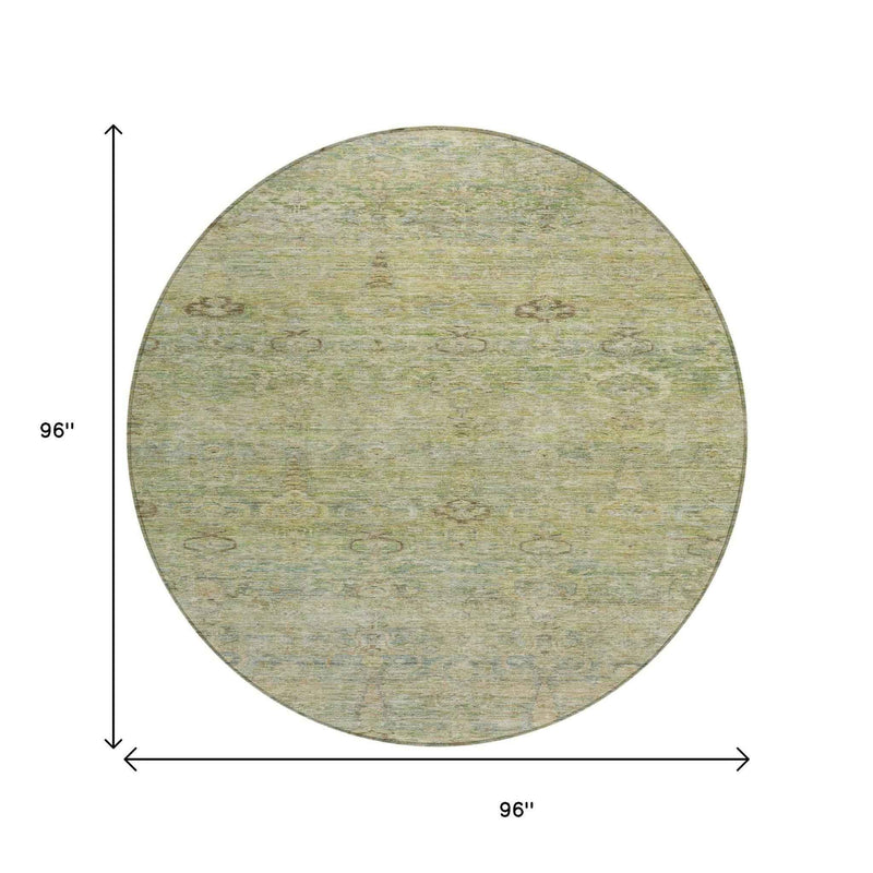 8' Green And Gold Round Oriental Washable Indoor Outdoor Area Rug