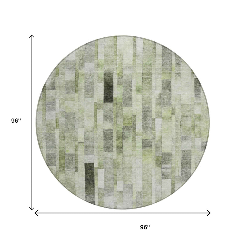 8' Green And Gray Round Striped Washable Indoor Outdoor Area Rug