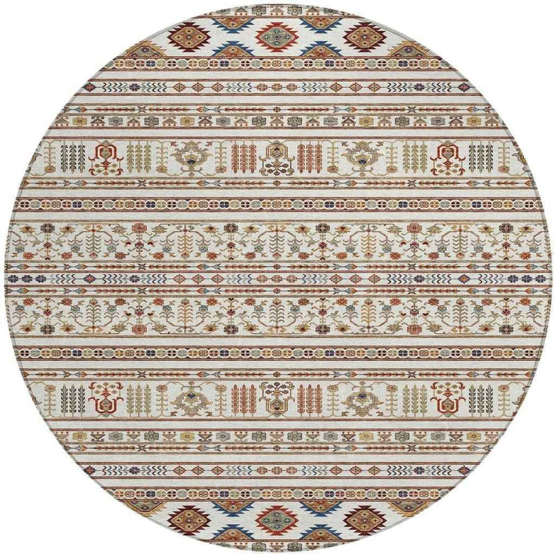 8' Ivory Blue And Copper Round Tribal Washable Indoor Outdoor Area Rug
