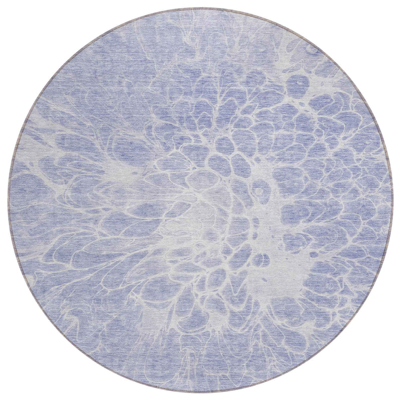 8' Lavender Ivory And Lilac Round Abstract Washable Indoor Outdoor Area Rug