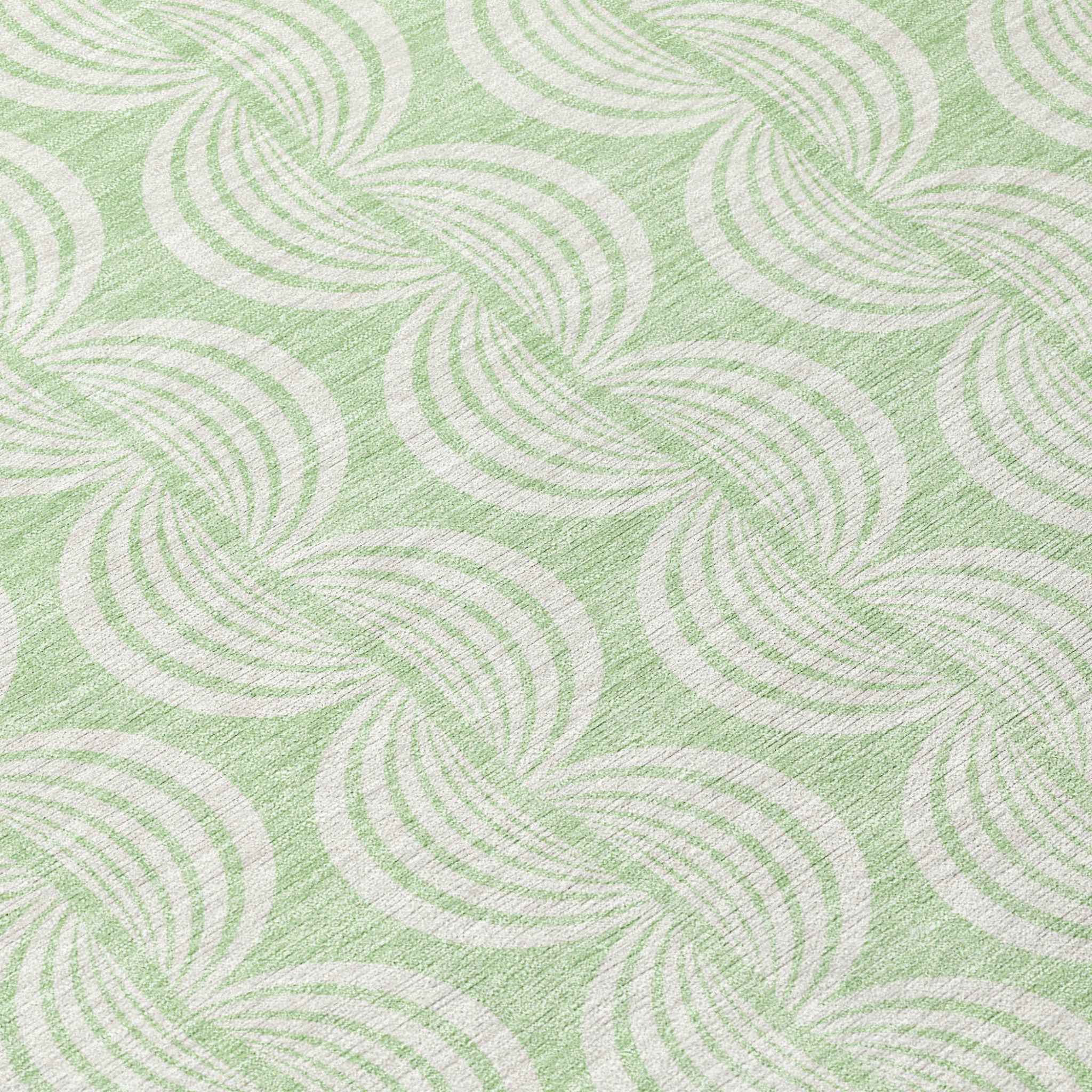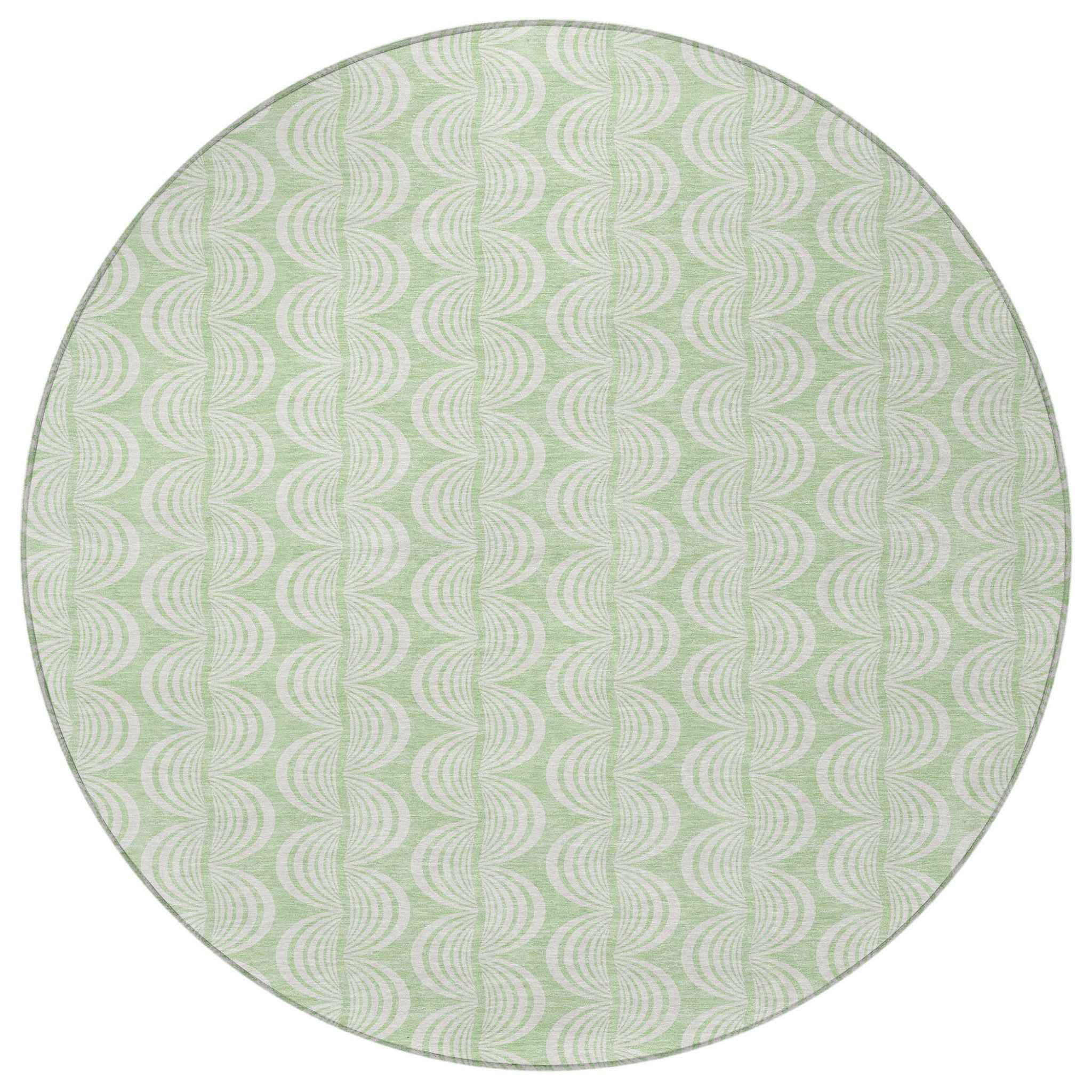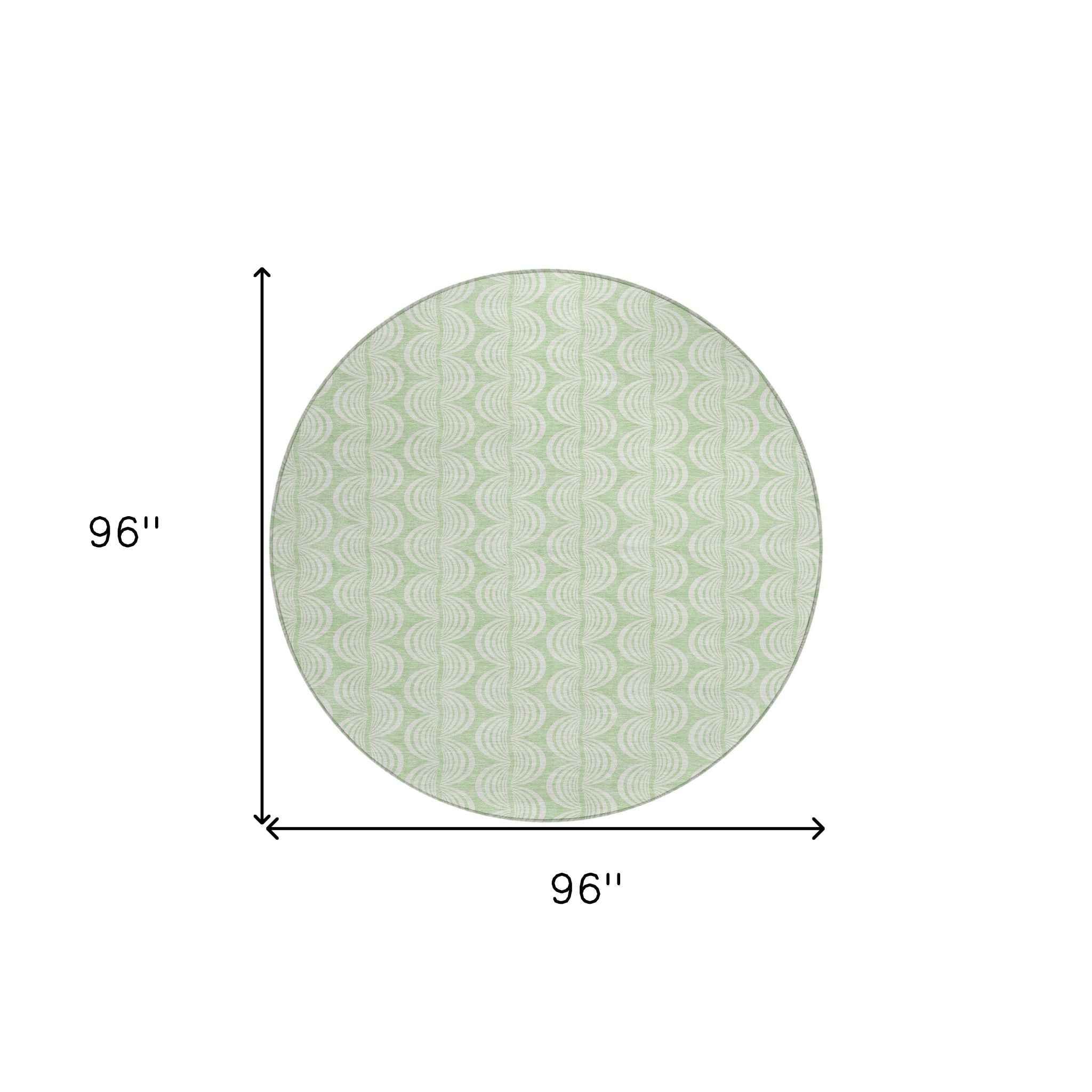 8' Mint Green And Beige Round Ogee Washable Indoor Outdoor Area Rug