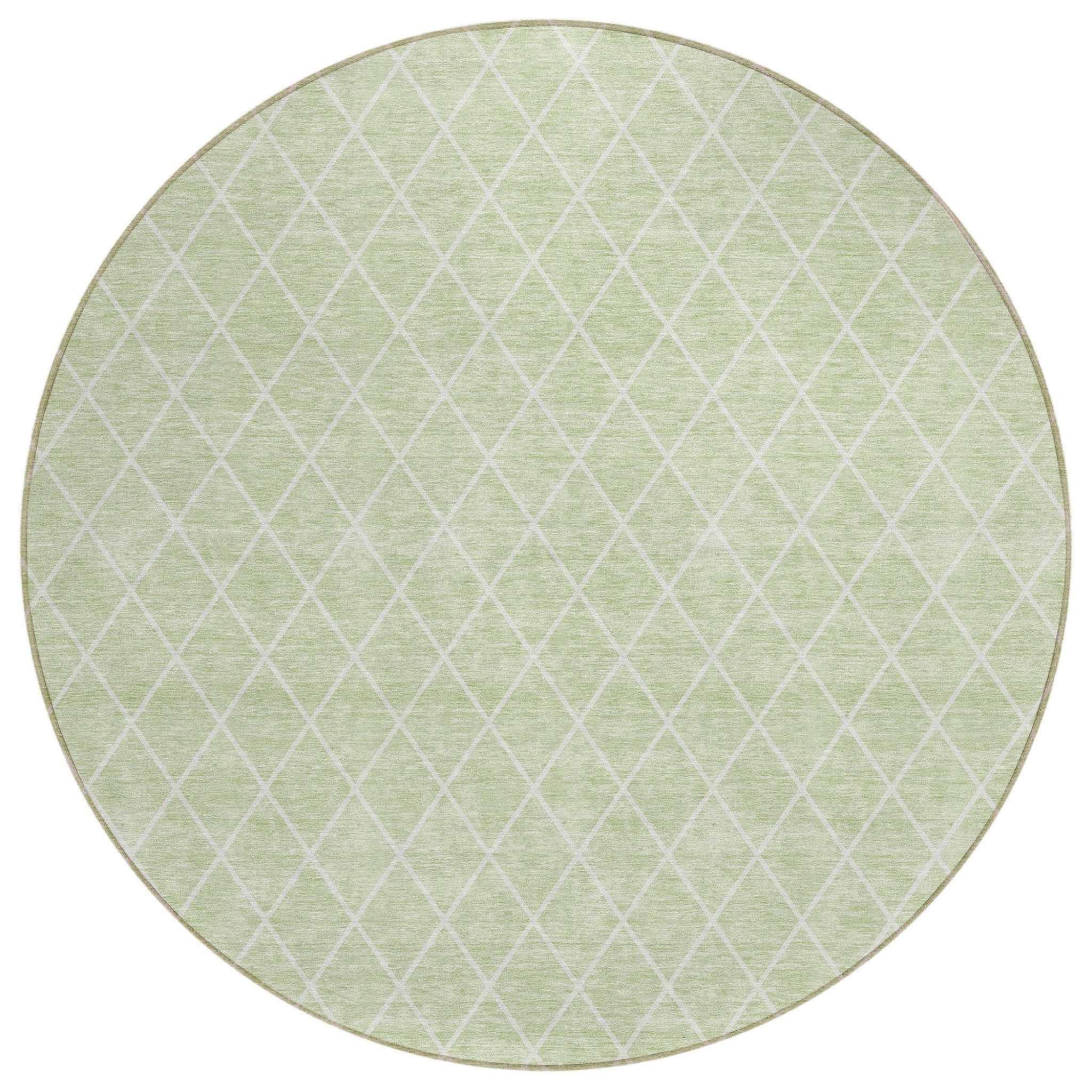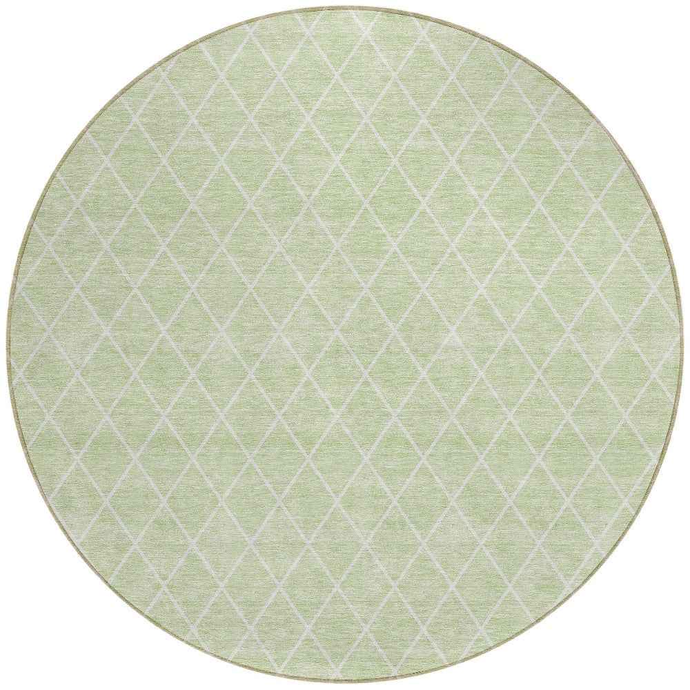 8' Mint Green And Ivory Round Geometric Washable Indoor Outdoor Area Rug