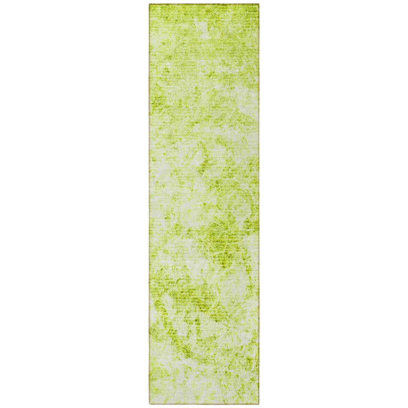 8' Runner Lime Green Abstract Washable Non Skid Indoor Outdoor Runner Rug