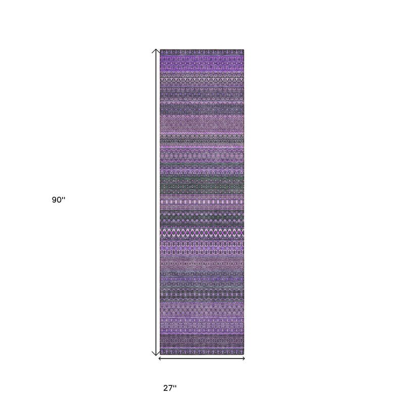 8' Runner Purple Striped Washable Non Skid Indoor Outdoor Runner Rug