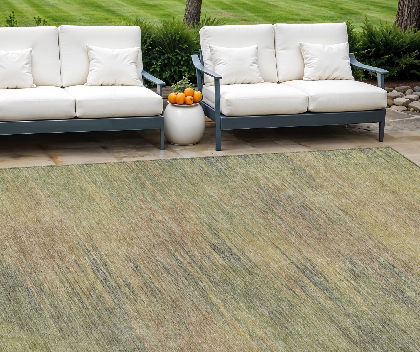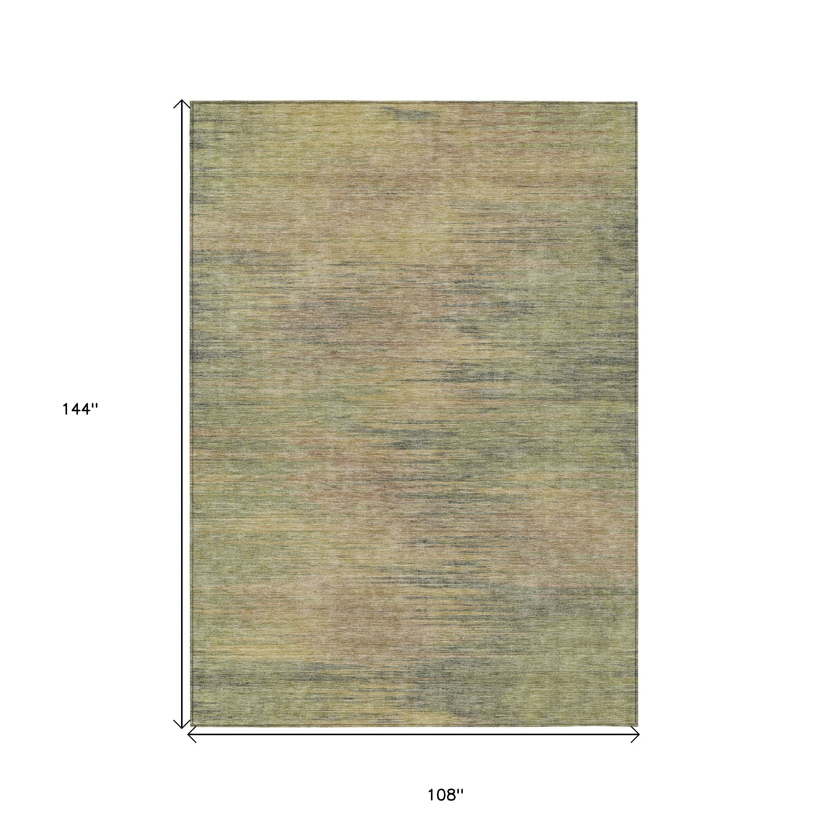 9' X 12' Artichoke Green Fern Green And Gold Abstract Washable Indoor Outdoor Area Rug