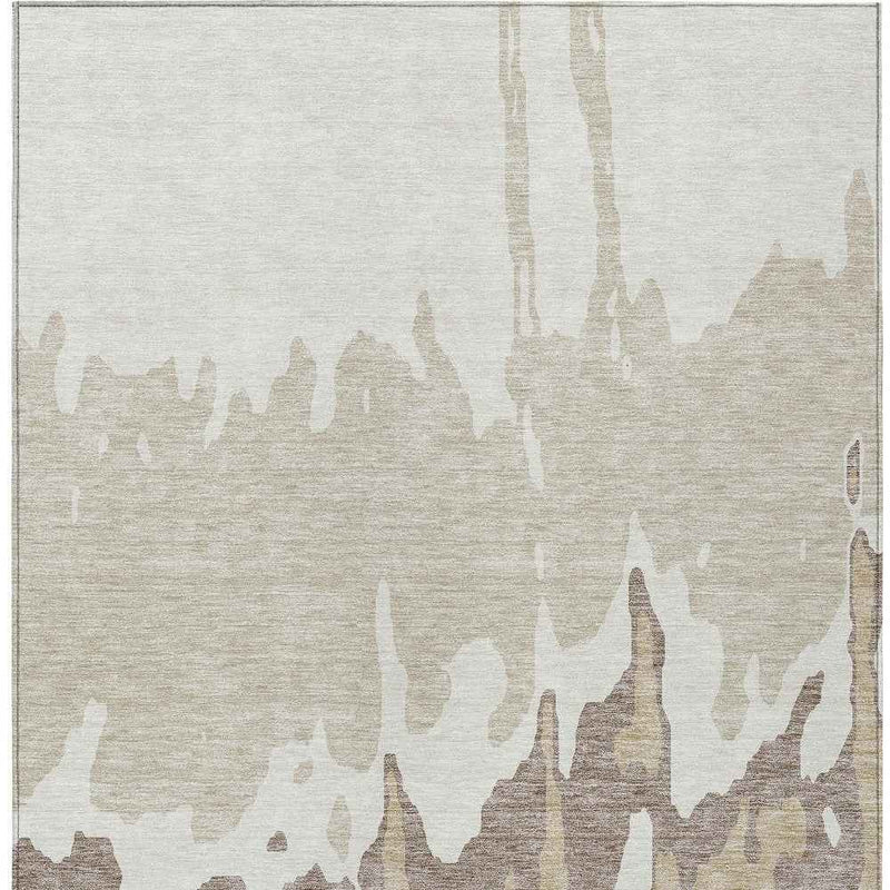 9' X 12' Ivory And Beige Abstract Washable Indoor Outdoor Area Rug