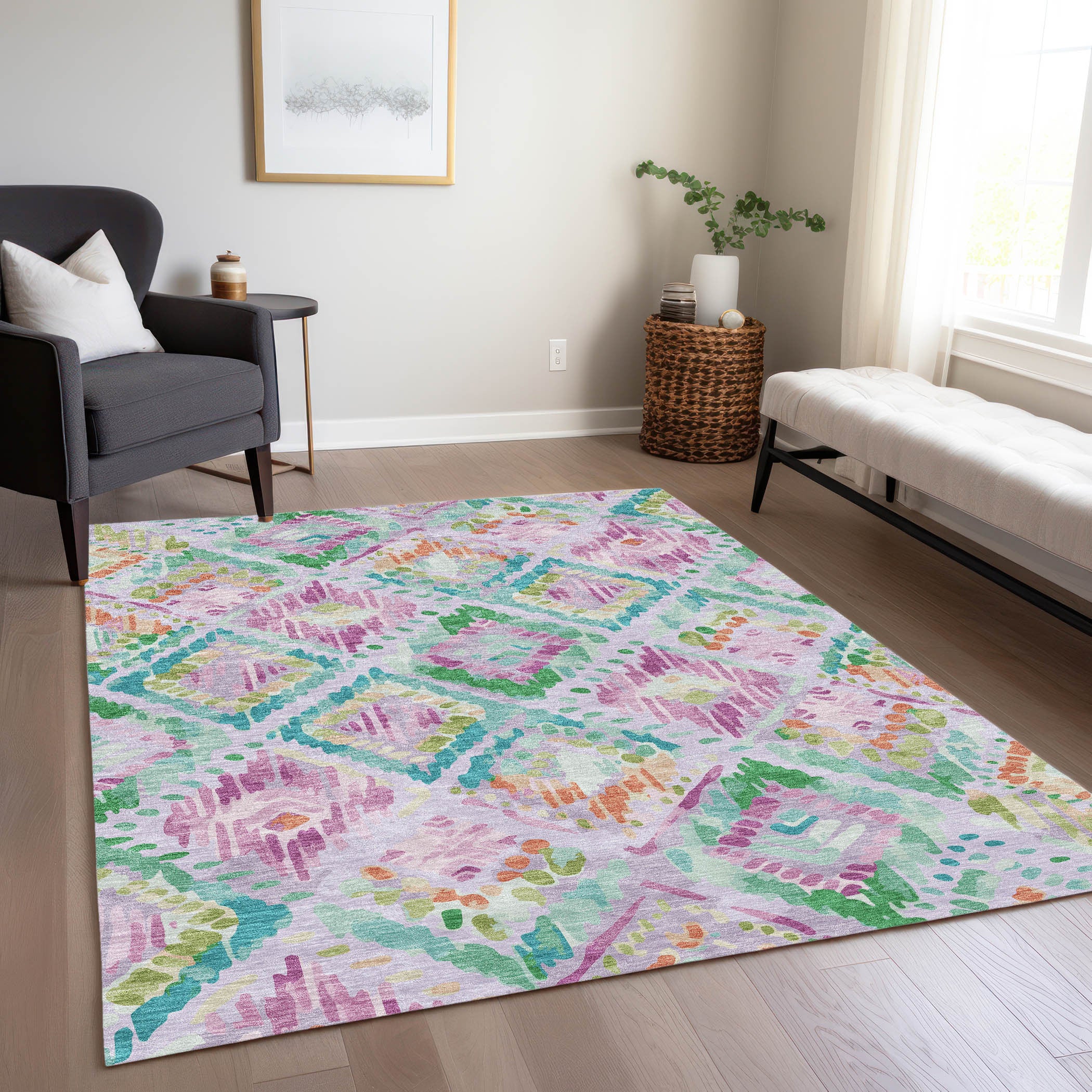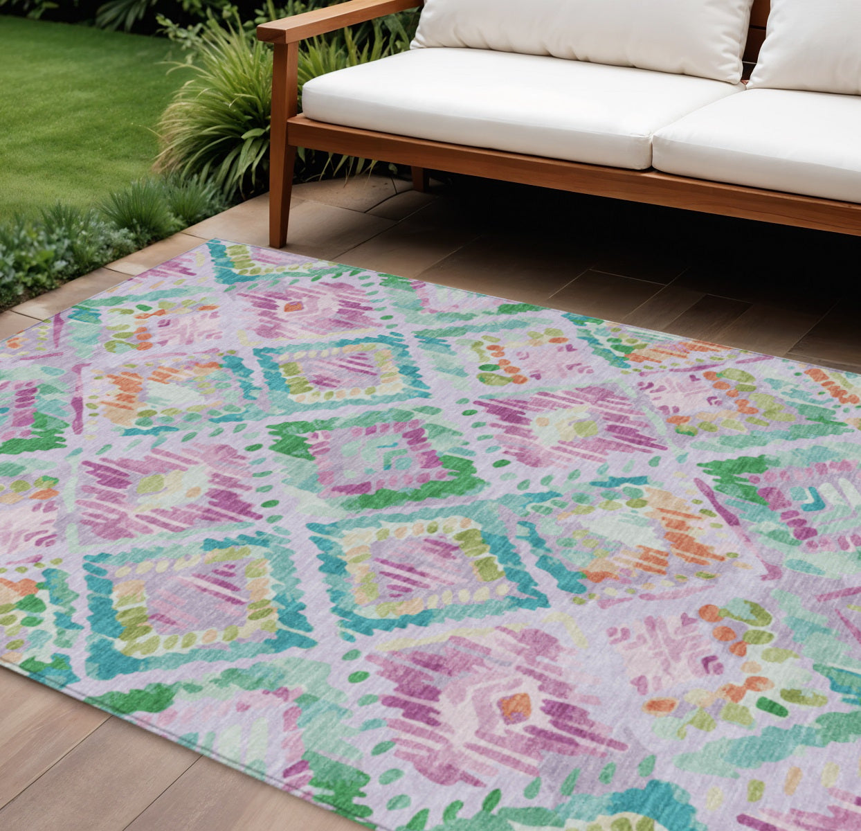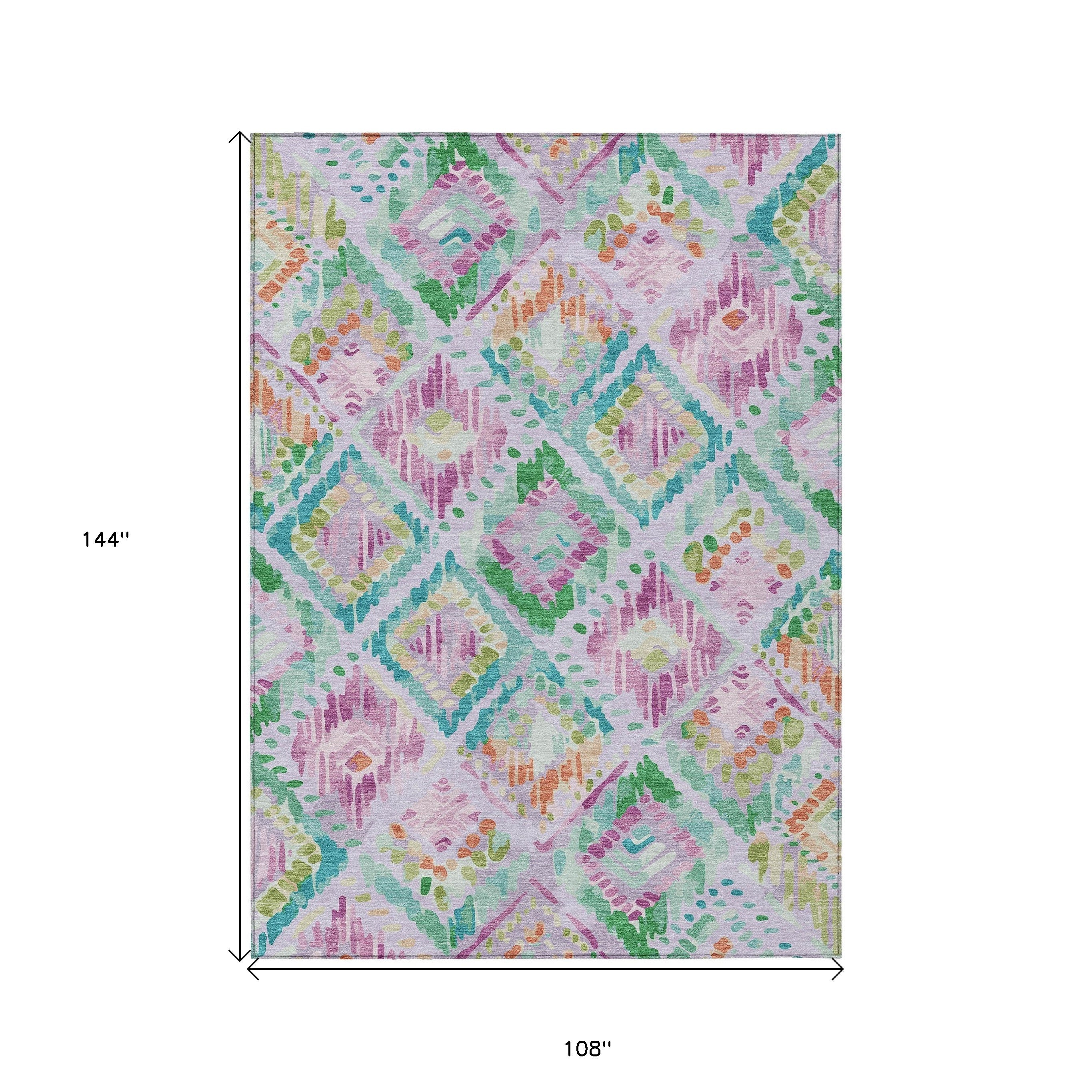 9' X 12' Lavender And Purple Geometric Washable Indoor Outdoor Area Rug
